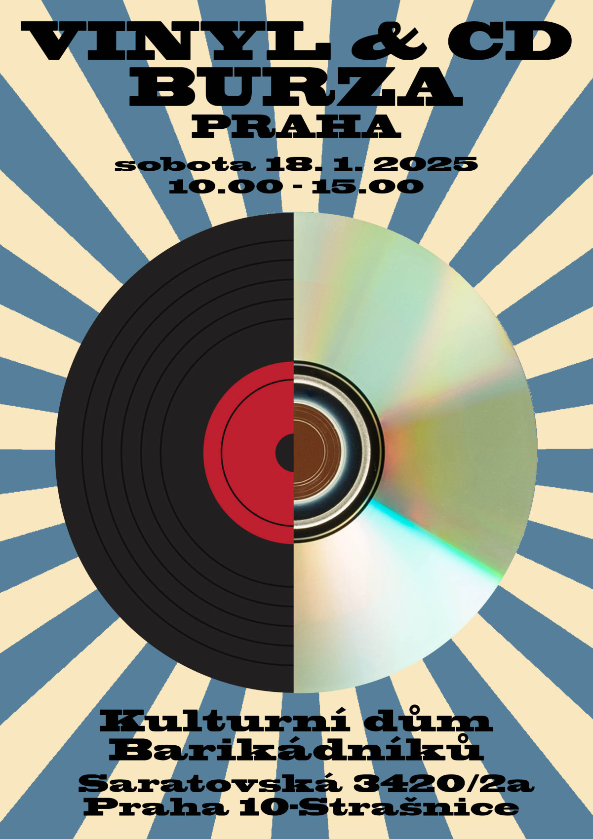 Zveme všechny příznivce a sběratele na mezinárodní burzu hudebních nosičů, která se koná v sobotu 18. ledna 2025 v KD Barikádníků (Barča), Saratovská 3420/2a, Praha 10 od 10 do 15 hodin. Na 150 stolech českých i zahraničních prodejců a vystavovatelů najdete vinyly, cd i mg všech žánrů. Těšíme se na setkání www.vinylburzapraha.cz