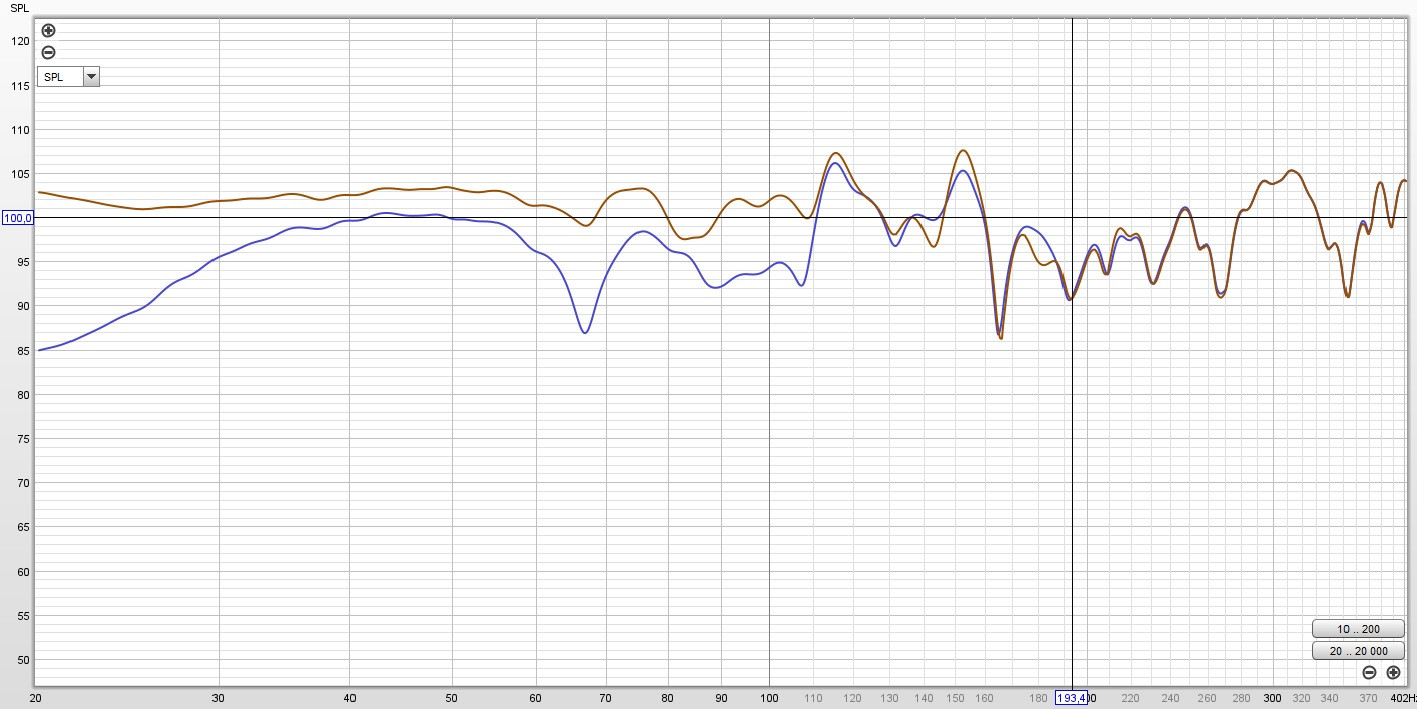 Pak jsem přišel na to proč jsem to zpoždění předtím neviděl. Nevěděl jsem že kdyžsi v REWu nechám zapnuté velké vyhlazování (když koukám na SPL) tak na to reagují všechny ostatní grafy. Pak jsou rozdíly opravdu značné..