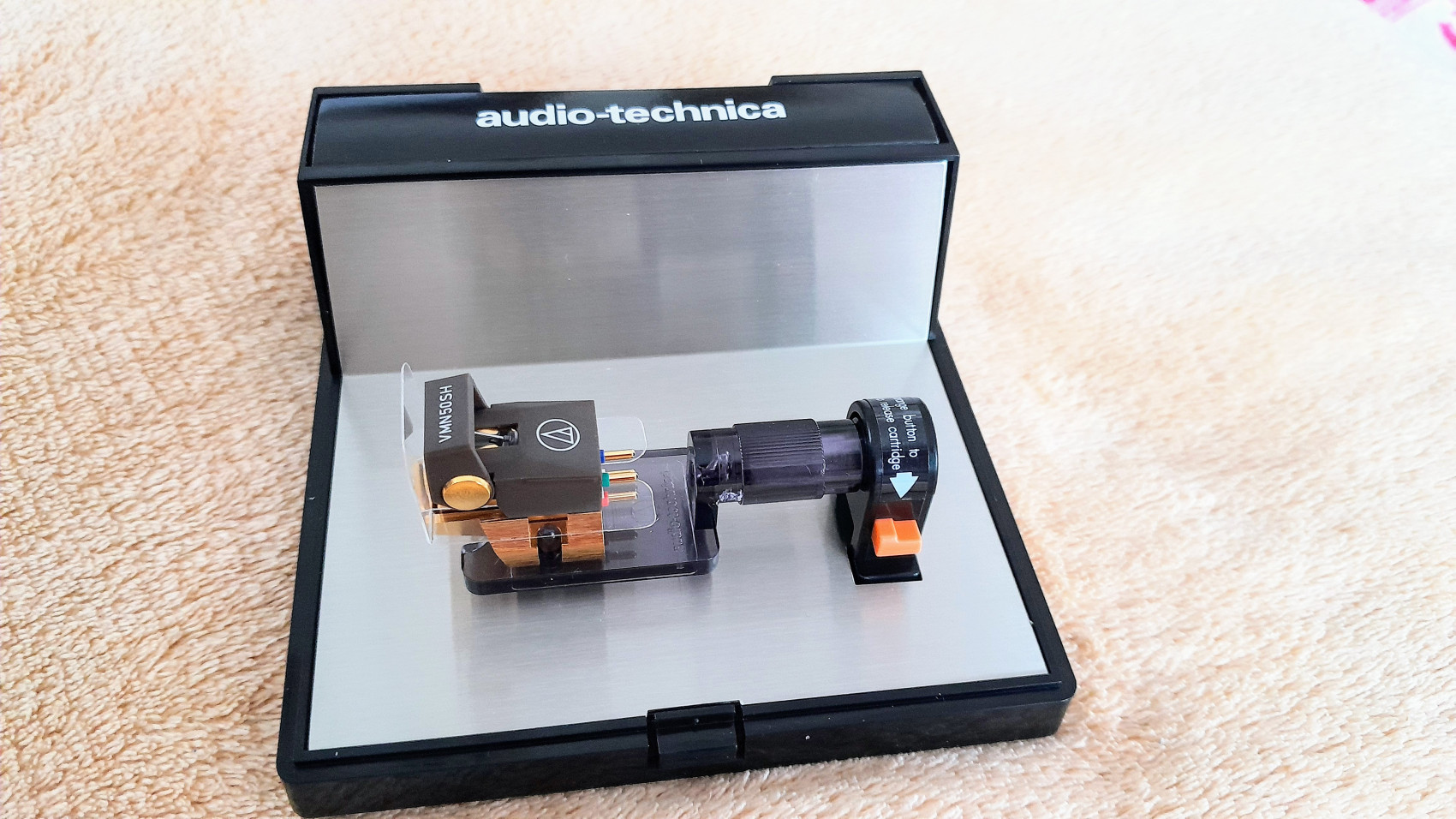 V té krabičce to není headshell, ale opravdu jenom taková plastová "fičurina", aby to bylo fest zafixovaný pro přepravu. A tam, kde je nápis, je takový malý boxík, kde byly šrouby, matice, podložky a kablíky. Dokonalý prepravní box.