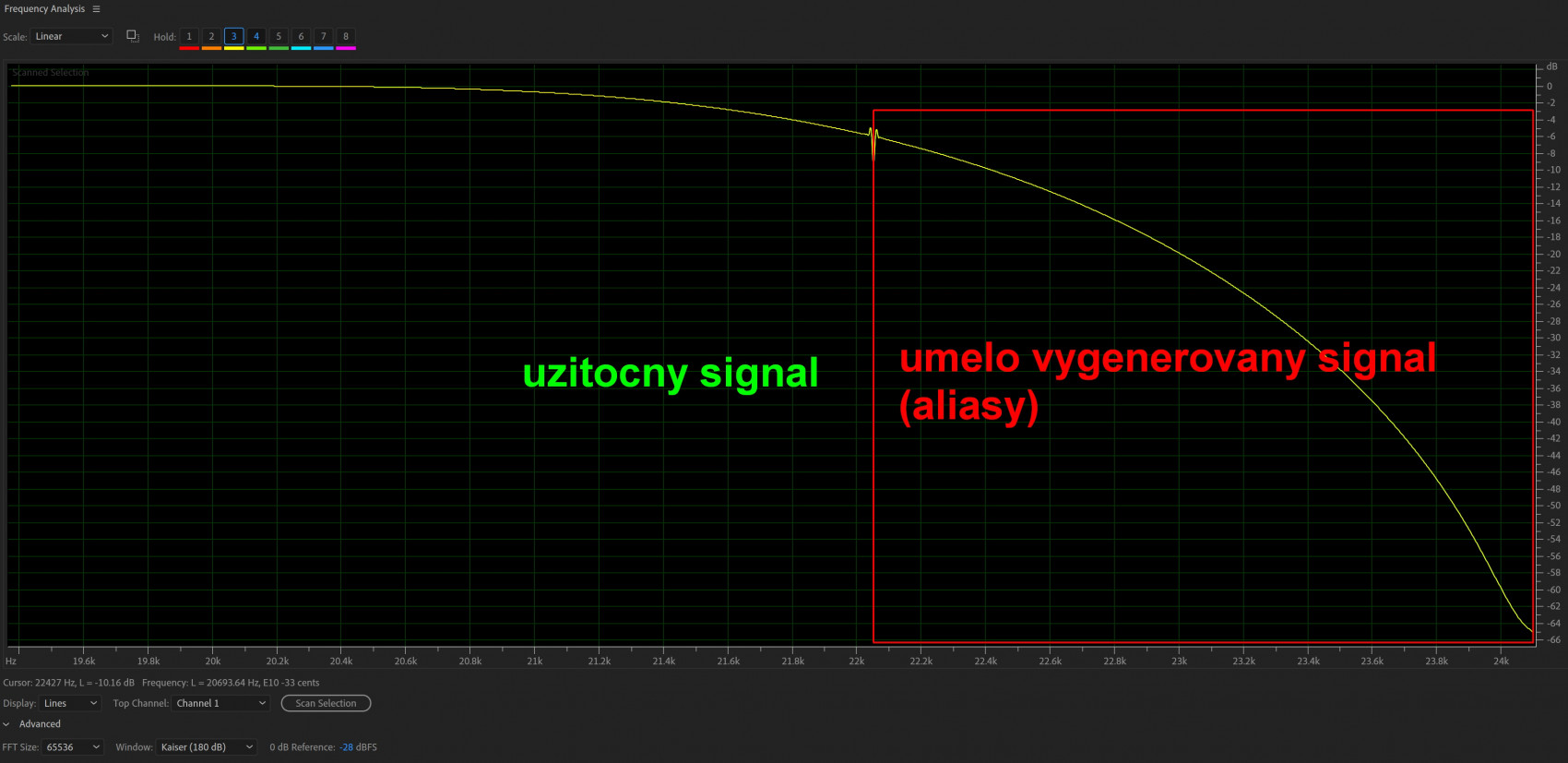 Za 22 050 Hz to vytvara vela silnych aliasov. Na grafe k ADi2 to nie je tak vidiet lebo je sikovne seknuty a vymierkovany.