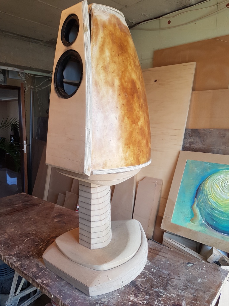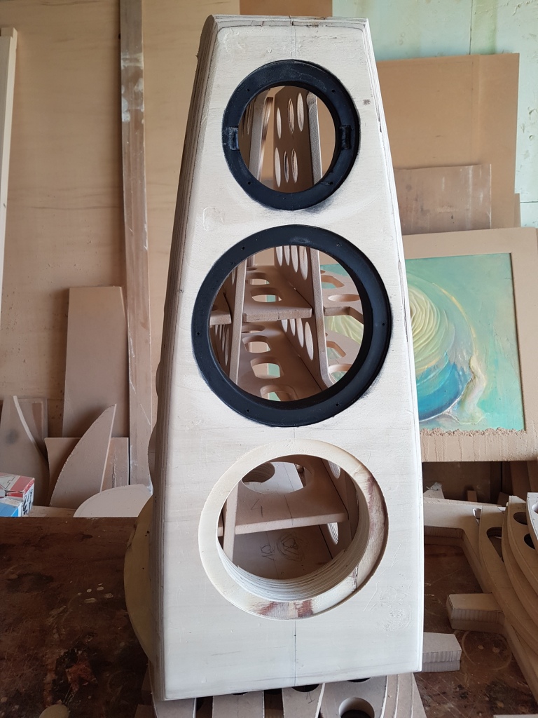 The loudspeakers are "SEAS"- Excel / Tw-1”, Mw-5”for center 2х 5.5”,Bass-8,5”/ and cross-over parts- "Intertechnik".