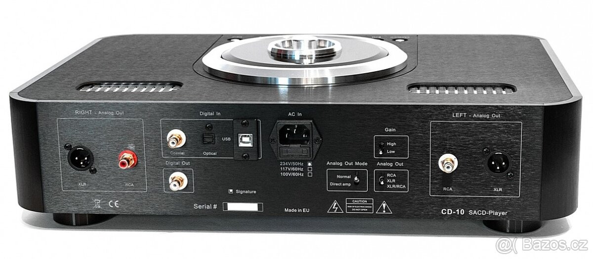 Uvažujem o predaji High-End CD/SACD prehrávača, so špičkovým DAC v jednom, Ayon CD-10 Signature. Prístroj bez pochýb patrí k tomu najlepšiemu, čo svet audia ponúka. O zvuku sa rozpisovať netreba, pretože je famózny, príjemný, detailný a analógový zvuk elektróniek vyniká vo všetkých aspektoch. Masívne šasi z brúseného hliníka a celková hmotnosť 13 kg. Pre majiteľov rozsiahlej zbierky CD nosičov bude kúpa určite dobré rozhodnutie a zrejme aj konečná. Celokovové diaľkové ovládanie, stav nového kusu, nefajčiarske prostredie, originálne balenie. Cena dohodou, poprosím len vážnych záujemcov k jednaniu. Ďakujem.