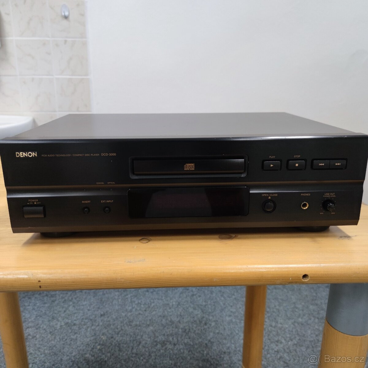 DENON DCD 3000 s originálnym diaľkovým ovládaním. V podstate je jedna o rovnaký prístroj ( elektronika + DAC) ako top model DCD-S10, len v inom šasy. Optický je vo veľmi dobrom stave vzhľadom k veku prístroja, s pár škrabancami na vrchnom kryté.Veľa ľudí ho pre jeho kvality použiíva ako DAC pre iné digitálne zdroje.