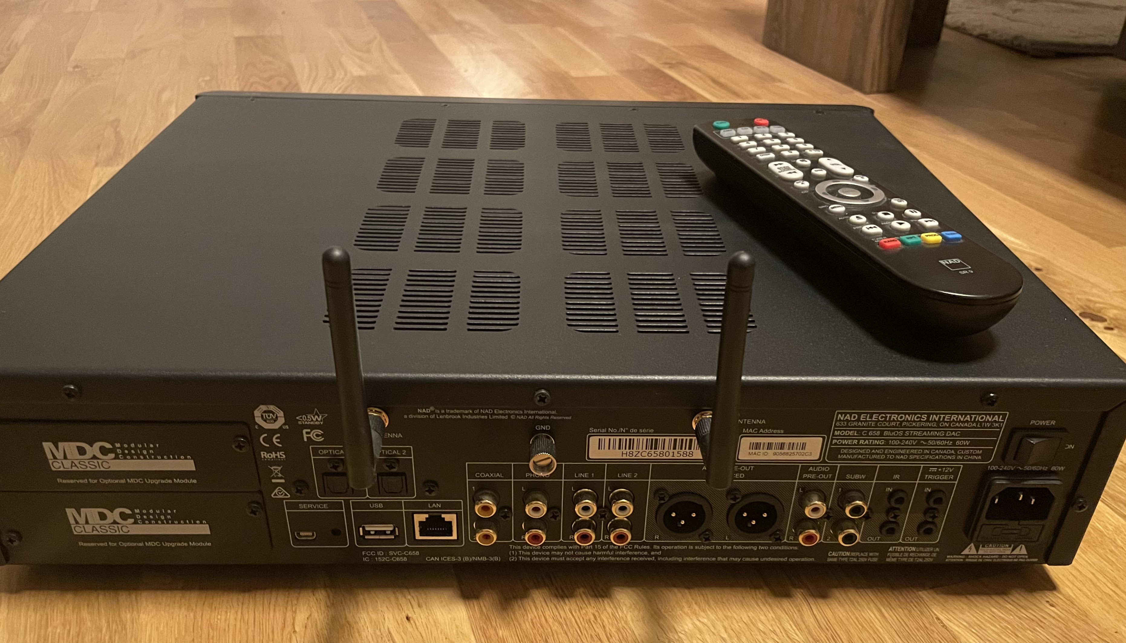 C 658 v sobě má integrovaný také systém Dirac Live, který ve spolupráci s počítačem nebo mobilní aplikací poměrně rychle a uživatelsky poměrně přívětivě dokáže zajistit korekci s ohledem na akustiku prostoru, což (nejen) v moderních místnostech může pomoci podstatně vylepšit poslechový zážitek. Hluboké tóny mohou mířit až do dvou subwooferů díky dvojici mono výstupů. Kompletní příslušenství pro měření místnosti, krabice. NAD C658 je ještě v záruce.