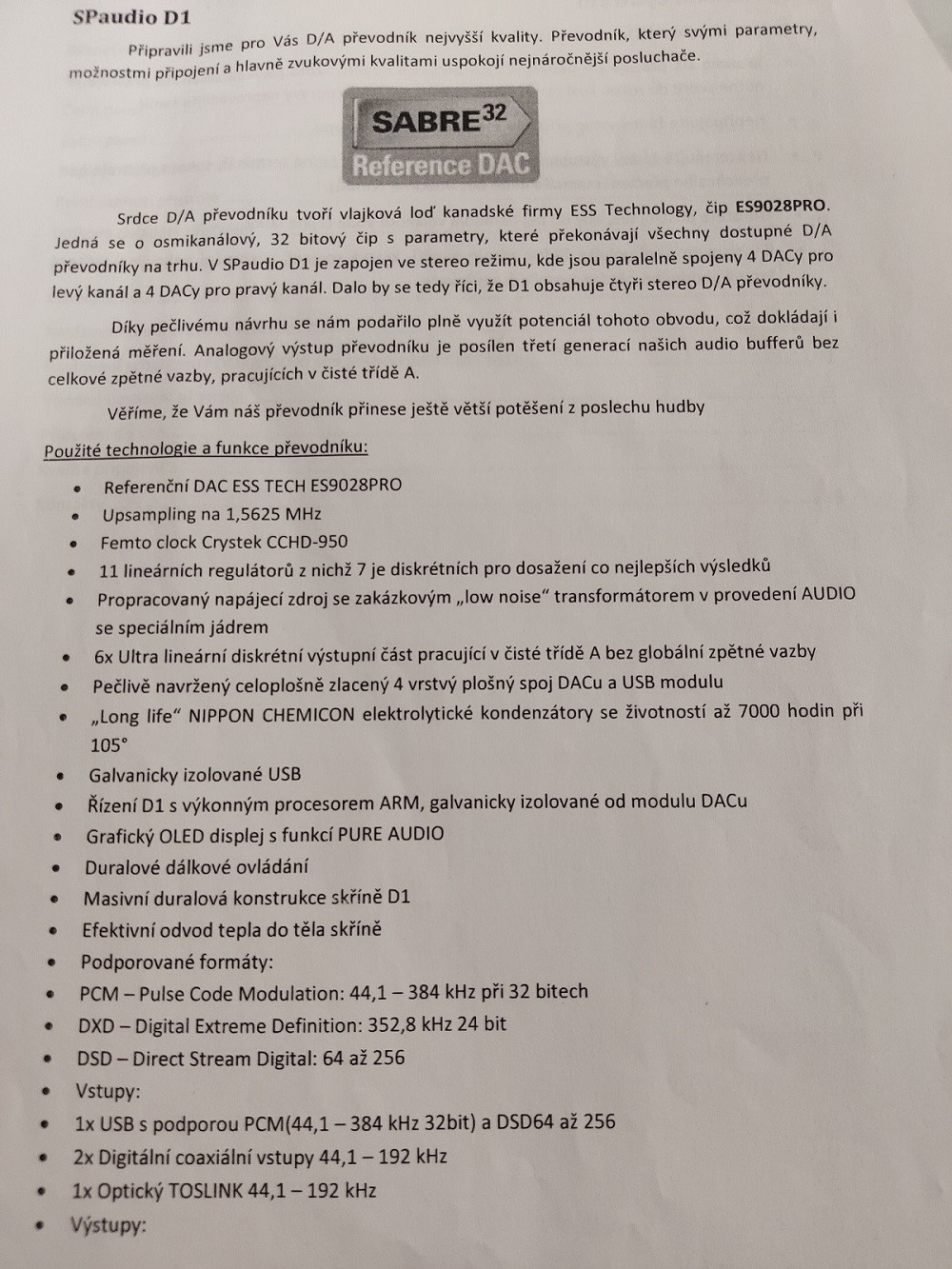 Na netu jsou velmi kladné recenze.Důvod prodeje je přechod na Meitner,s kterým snese tento převodník srovnání.