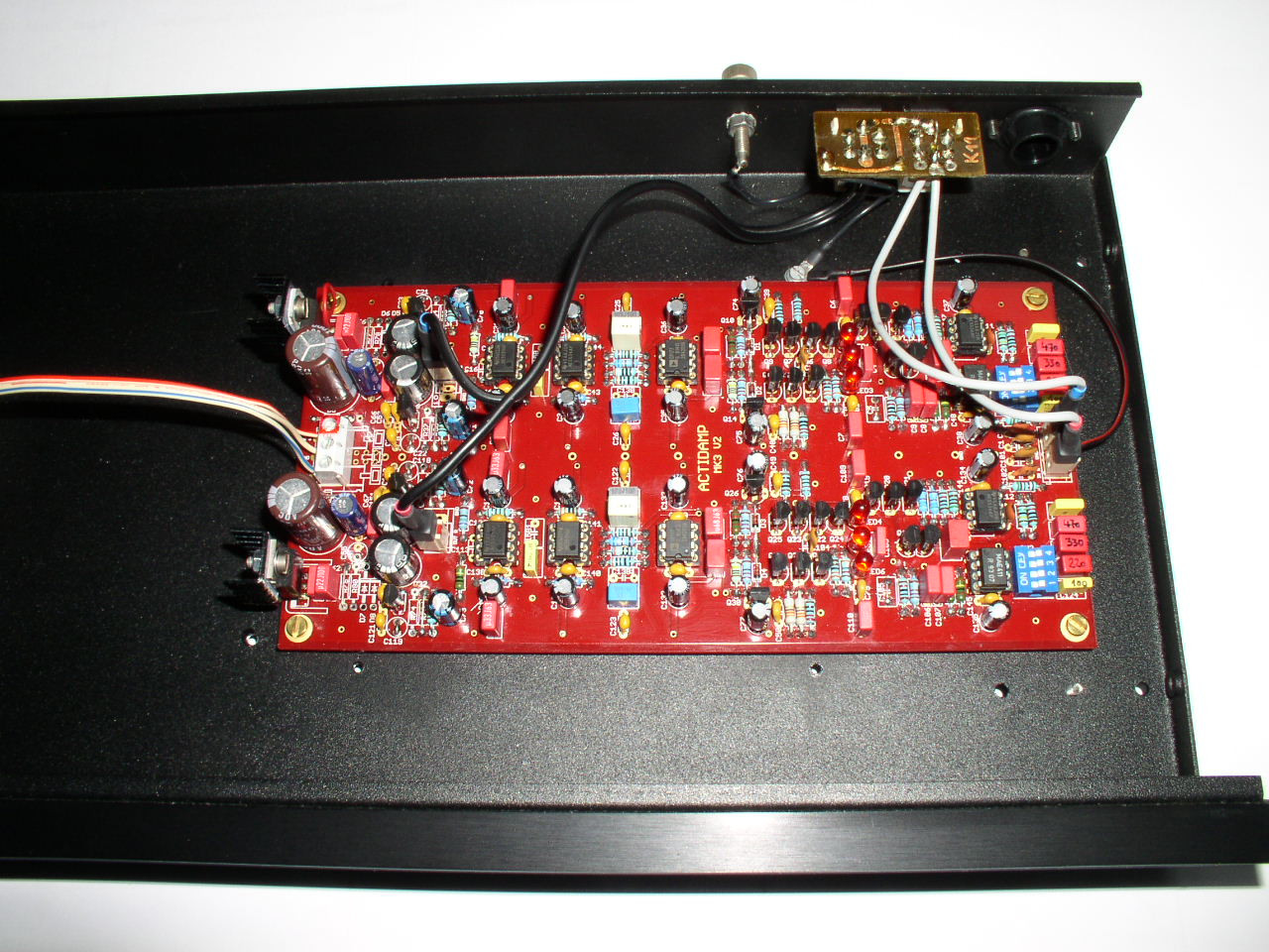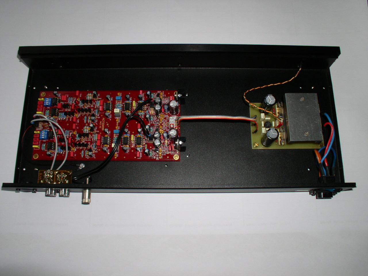 korekční předzesilovač z rodiny AcD, modifikovaná verze zvukově nejlepšího typu Mk-III, tranzistorový input stage, pasivní korekce, output stage s OZ, profi červená zlacená DPS 200 x 100mm, kvalitní vybírané součástky, nízkošumové tranzistory a oper.zesilovače v precizních paticích, in/out na CINCH možno doplnit (příprava+kabel) na DIN-input (např. pro rameno Project1/Tesla NC500), kompletní dokumentace; tuhá tovární skříň z 1,0mm plechu, komaxit černá struktura, broušený ALU-čelní panel tl.12mm, černý elox, plochá červená power-LED 3mm v rovině čela, prosvětlený main switch na zadním panelu, celkové rozm. 445x195x53mm, 2,9kg.