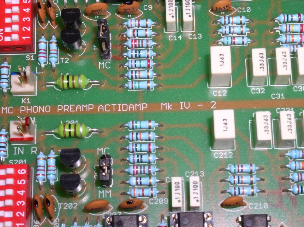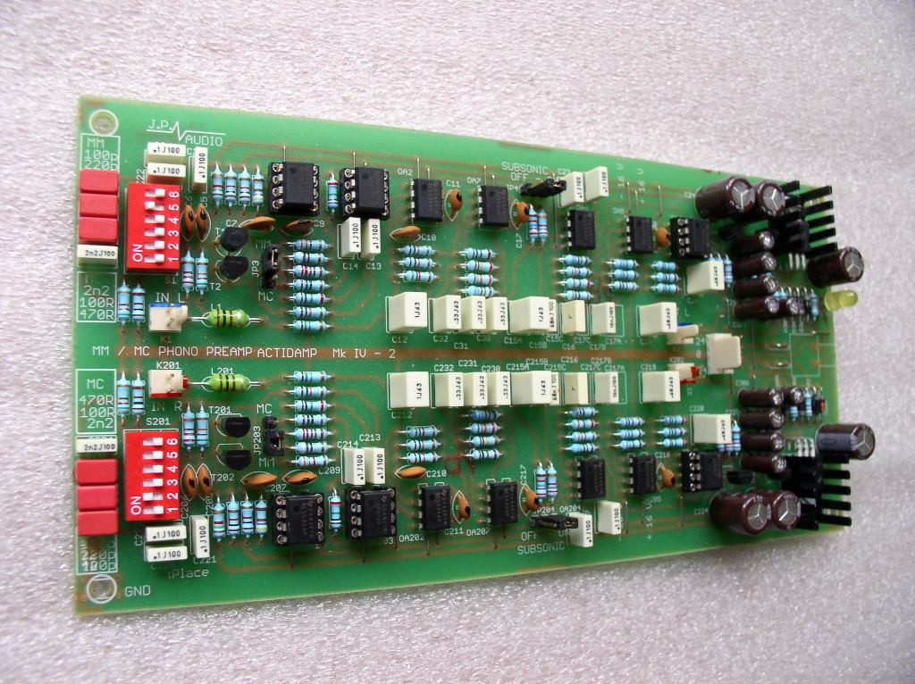 oživená a provozovaná deska korekčního předzesilovače ActiDamp MkIV-2, profesionálně osazená DPS J.P.Audio 200 x 100mm, kvalitní vybírané součástky a nízkošumové oper.zesilovače Texas Instruments v precizních paticích, jumperovatelný MC/MM zisk, jumperovatelný subsonický filtr, pouze deska vlastního preampu-bez desky zdroje +/-24V se síťovým trafem (jednoduchý symetrický zdroj nutno dodělat), bez konektorů, ve své době i nyní špičkový RIAA preamp za dostupný peníz, obvodově a parametrově nesrovnatelný s běžnou komercí