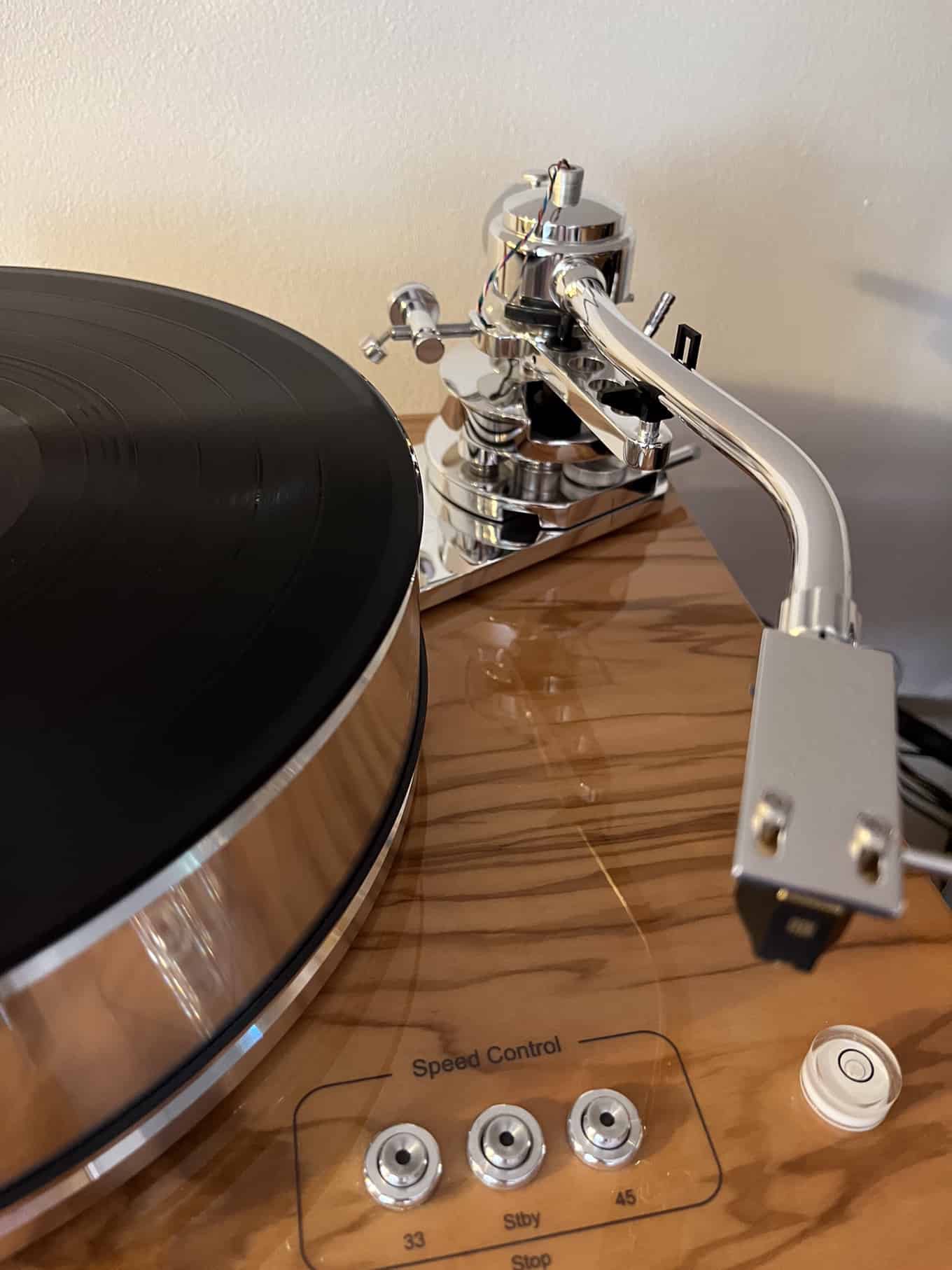Díky magnetickým podstavám s tlumením TPE plave celý gramofon prakticky na magnetickém polštáři. Šasi z hustého MDF kompozitu obsahuje anti-rezonanční kovový granulát. 10,4 kg těžký talíř s ultra-tichým invertním keramickým kuličkovým ložiskem s magnetickým odpružením je rovněž tlumen TPE. Otáčky jsou řízeny elektronickým speed boxem.
