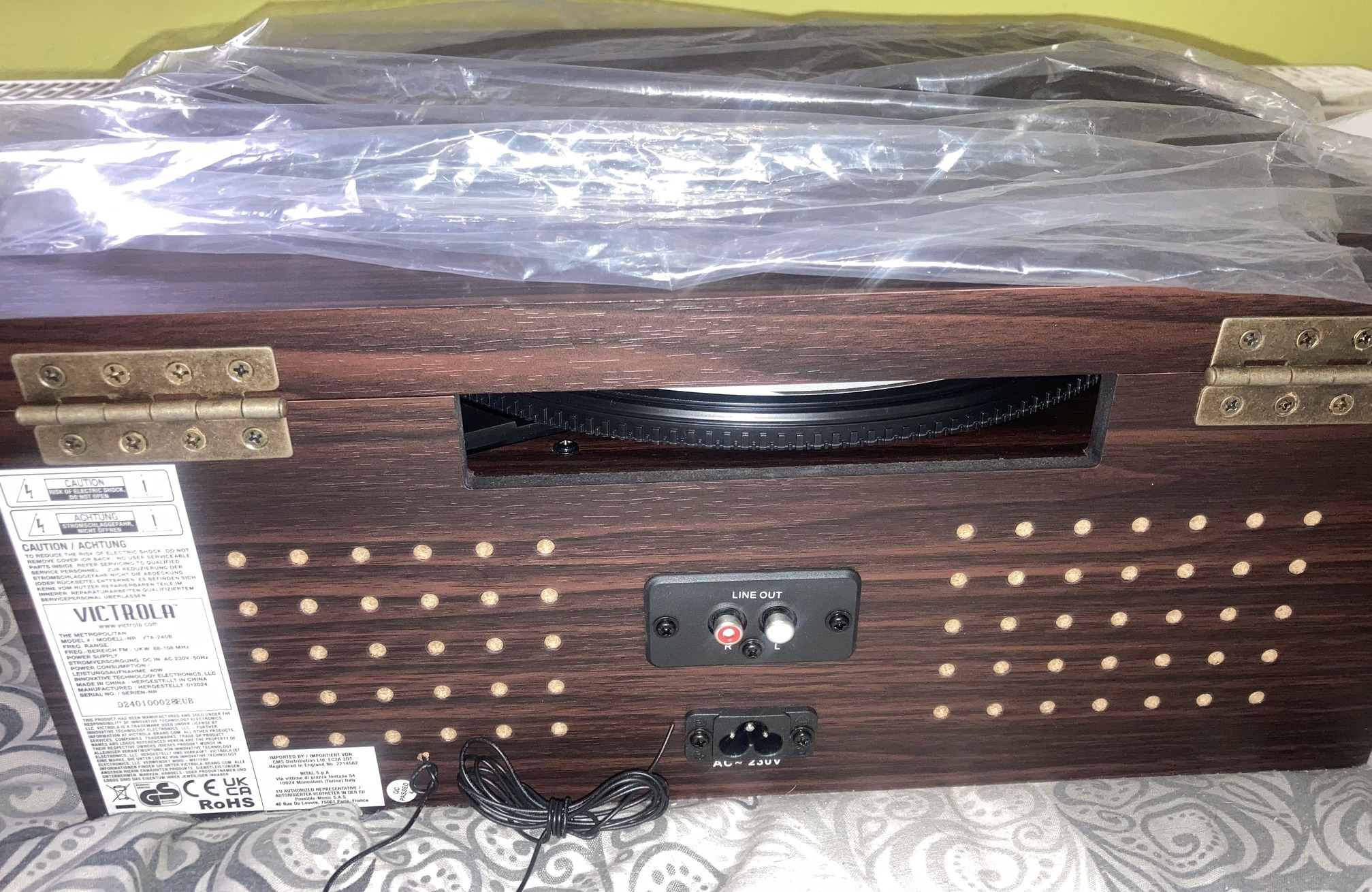 Multifunkční gramofon Victrola VTA-240B v retro designu. Zabudované reproduktory s výkonem 2× 5 W.