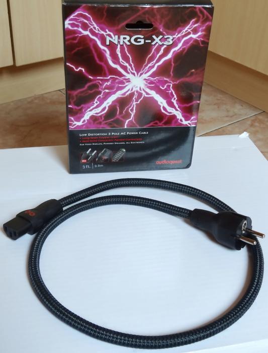 Propracovaný high-endový síťový napájecí kabel Audioquest NRG-X3, 230V,trojvidlice, 0,9m.
