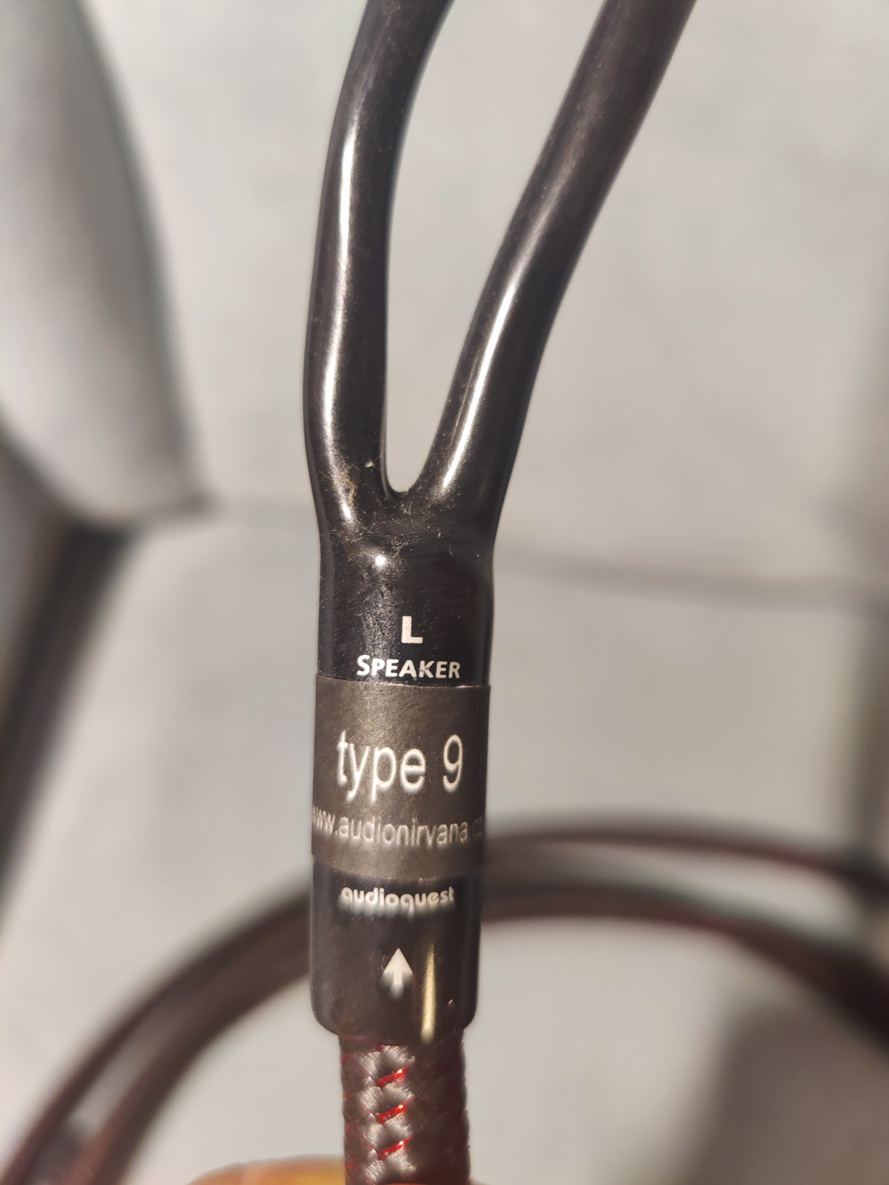 Prodávám reproduktorové kabely Audioquest Type 9. Koupeny v e-shopu Audionirvana. Jedná se o směrový kabel s vidlicovými konektory na straně zesilovače a banánky na straně reprobeden. Značka koncovek Viborg (rhodium). Délka kabelů je 2 m.