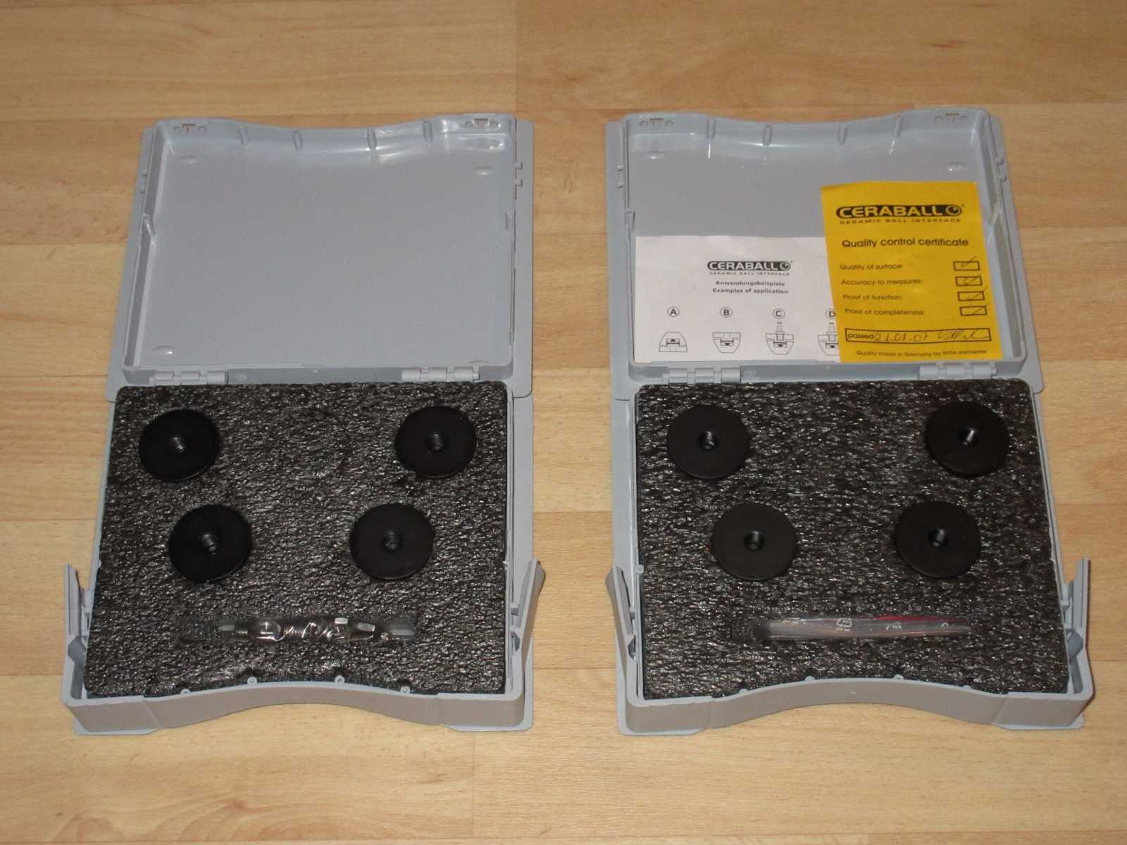 Prodám dvě sady antivibračních podložek Finite Elemente Ceraball v černém provedení. Jedna sada obsahuje 4 ks podložek. Originál balení. Kupováno u autorizovaného prodejce.