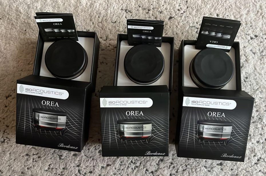 Predám 3 ks High-End antirezonančných nožičiek IsoAcoustics OREA Bordeaux určených aj pod audio prístroje s vyššou hmotnosťou. Sú ideálne pod zosilňovače, CD prehrávače, gramofóny, alebo pod subwoofery. Poskytujú mimoriadnu úroveň izolácie, okamžité zlepšenie presnosti zvuku, pevnejšie basy a vynikajúce zobrazenie priestoru. Eliminujú parazitné vibrácie. Som prvý majiteľ, stav nových kusov.