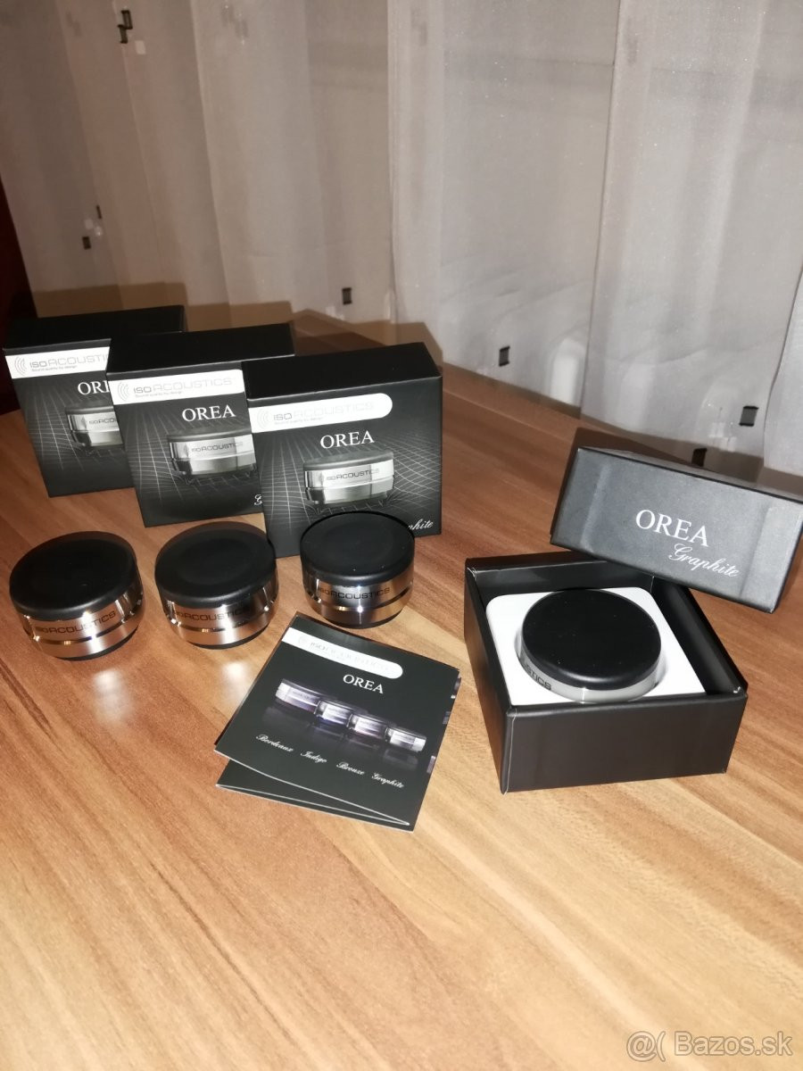 Predám 4 ks nové špičkové antivibračné nožičky IsoAcoustics Orea Graphite pod audio prístroje. Vyrobené z nehrdzavejúcej ocele s nízkym profilom a protišmykovým povrchom. Nosnosť jednej nožičky je 1,8 kg, teda konkrétne Orea Graphity, 4 kusy, sú určené napríklad pod CD prehrávače, prevodníky, gramofóny a podobne. Nožičky odstraňujú parazitné vibrácie a poskytuje väčšiu čistotu zvuku a zaostrenie detailov. Info do sms.