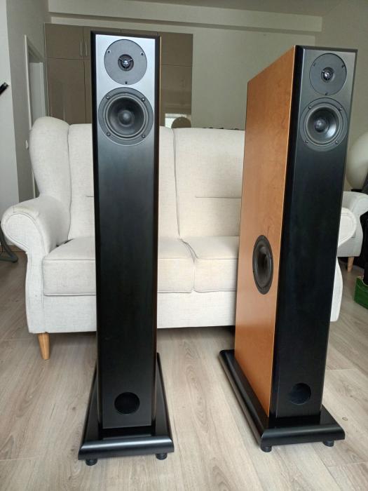 rozmery 107x25x50*cm (*hĺbka), konektory: banány alebo vidličky, impedancia 4 Ohm, výkon 150 W, meniče:¾" hliníkový kalotový výškový, 4" stredobasový z upraveného papieru, dva 6" basové z upraveného papieru, basreflex, nameraná citlivosť: 88,5dB/2,83V/m (B-vážené). Jedni z najlepších reproduktorov aké boli kedy vyrobené vo svojej (novej) cenovej kategórii a ére! pozrite https://www.stereophile.com/content/ste ... eaker-1995 (všimnite si ceny ostatných !) a prečítajte si recenziu: https://www.stereophile.com/floorloudsp ... index.html