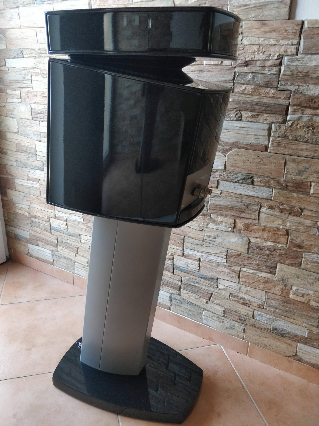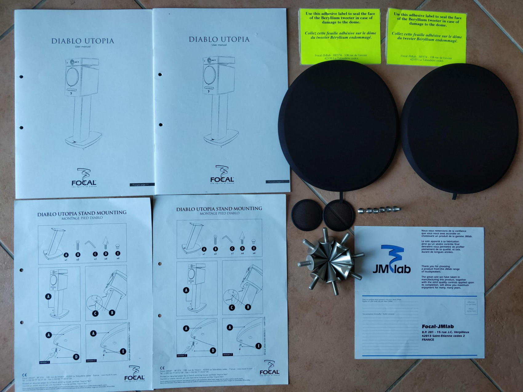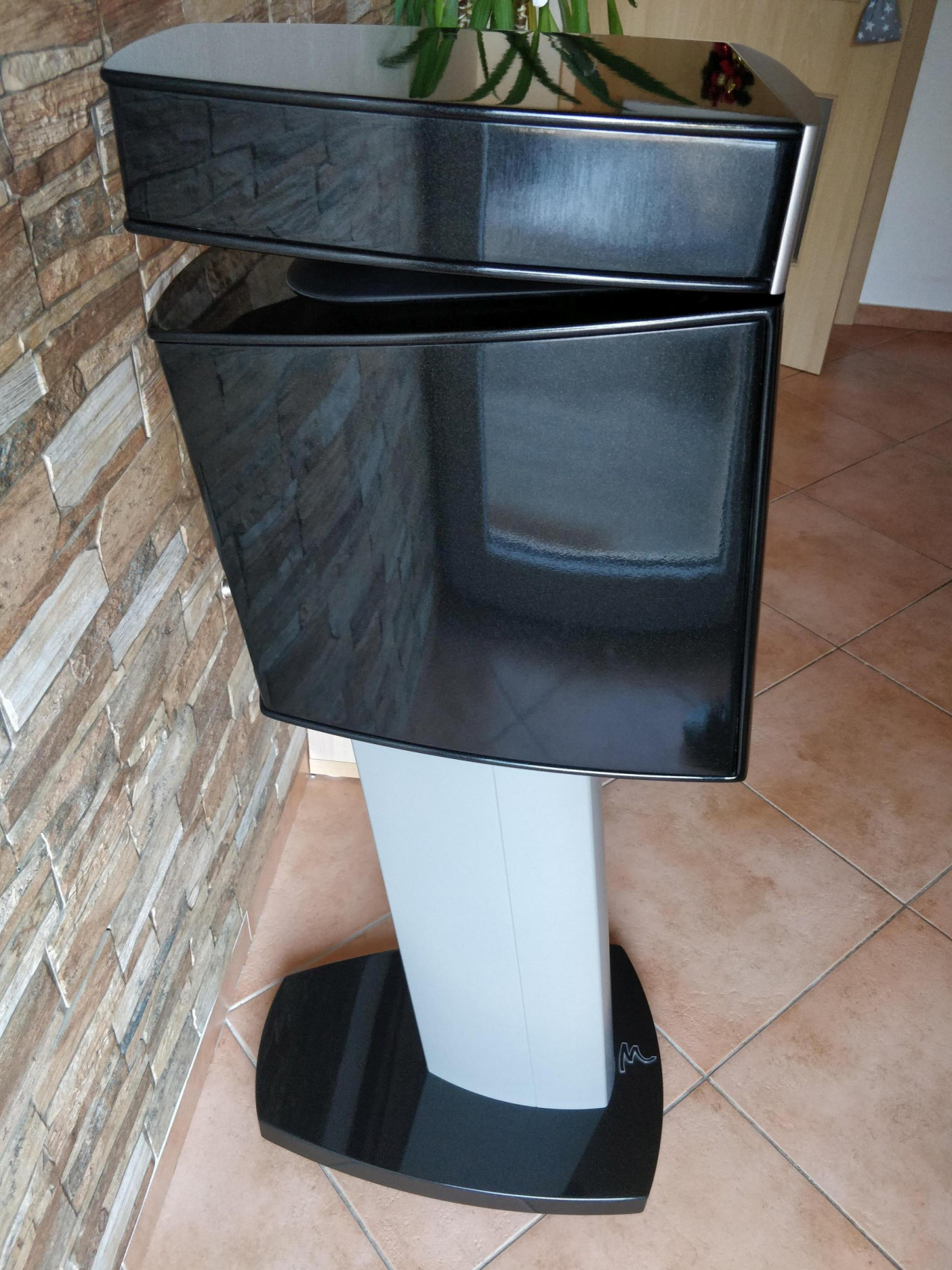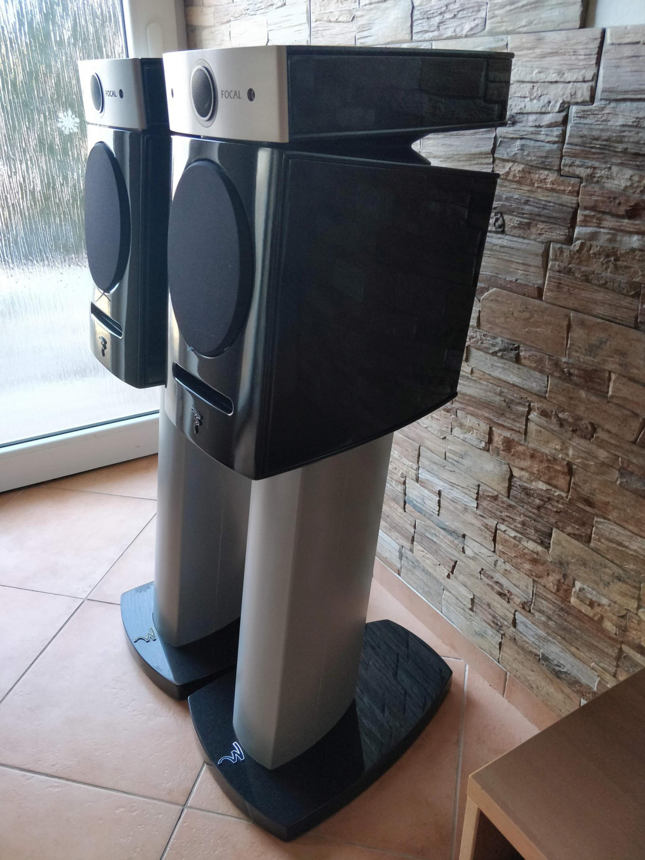 Prodám výborné reprosoustavy Focal Diablo III Utopia v černém perleťovém laku. Minimální známky používání, pouze dvě malá poškození viditelné jen po detailním zkoumání, viz foto. Technicky 100%. Bez původního obalu. Perfektní zpracování. Reproduktory jsou k dispozici s originálními stojany vyplněné pískem, který dnes každý stojí přes 25.000 Kč. Bohužel jeden stojan má vodorovnou prasklinu MDF desky na rohu zadní části (tedy není nijak vidět při běžném umístění), která je již zohledněna v ceně stojanů níže, taktéž viz foto, částečně opraveno. Cena dohodou. Cena nových soustav 230.000 Kč, se stojany 274.000 Kč.