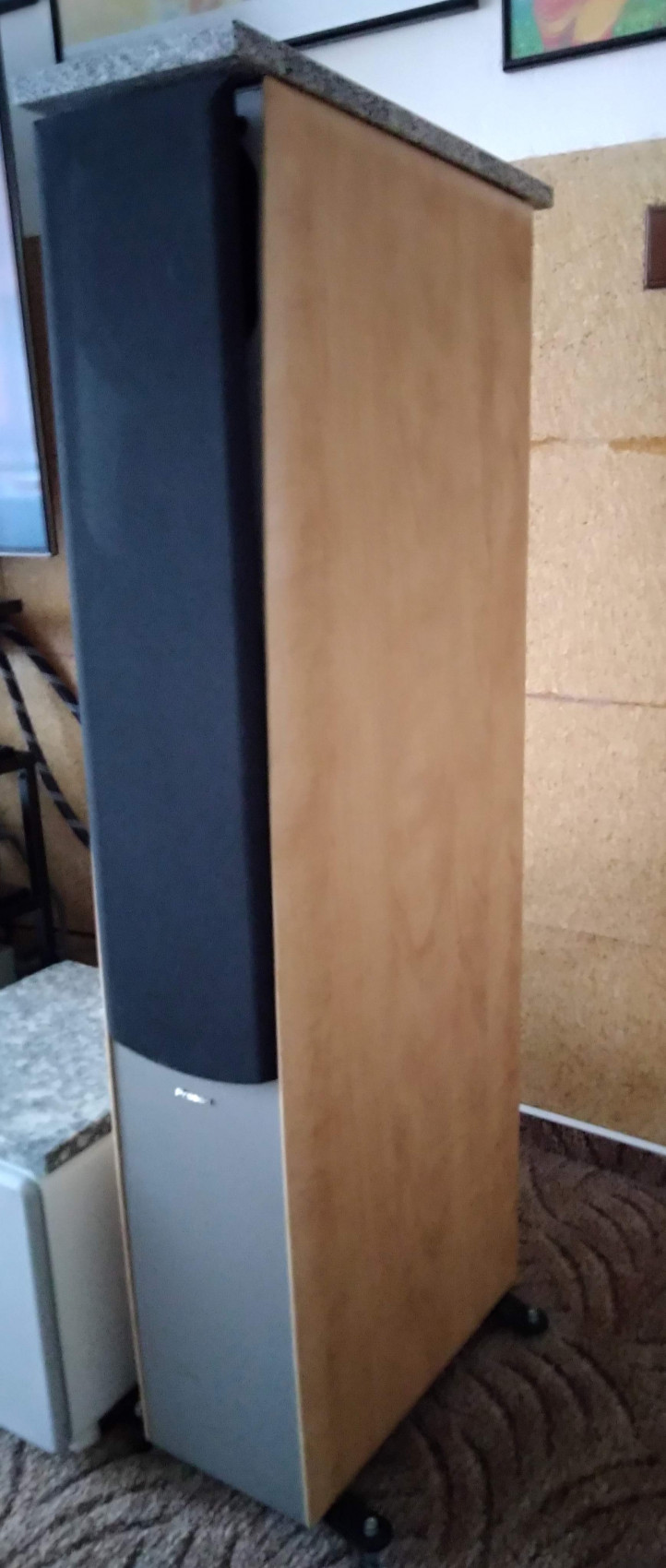 kevlarové membrány , 2 zadní bassreflex + ucpávky , hroty , š. 21, h. 40 , v. 110 cm. v ceně i 2 horní žulové desky.