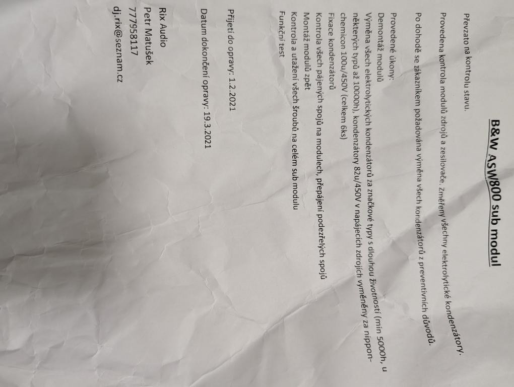 Ideální pro hifi stereo díky opravdu rychlému a pevnému projevu. Zesilovač o výkonu 1kW má 12" měnič v uzavřené ozvučnici pevně pod kontrolou. Samozřejmě v domácím kině by též jistě předvedl divy. Tento model subw. je dle mého názoru výrazně lepší než Velodyne SPL1200 Ultra, SPL1000 Ultra a Elac SUB2070, které jsem také vlastnil. Srovnatelný, který jsem měl, je dle mne snad Velodyne DD-12 i když ani ten není tak rychlý. Zdarma nechám osazeny Soundcare Superspikes, které mají pozitivní vliv na zvuk a zabrání šíření rezonancí do podlahy. Tento kus jsem si nechal v roce 2021 zrepasovat, resp. proběhla aktualizace součástek v zesilovači tak abych prodloužil životnost o další desítky let. Hraje opravdu dobře, není moc poznat, že v sestavě je nějaký subwoofer.