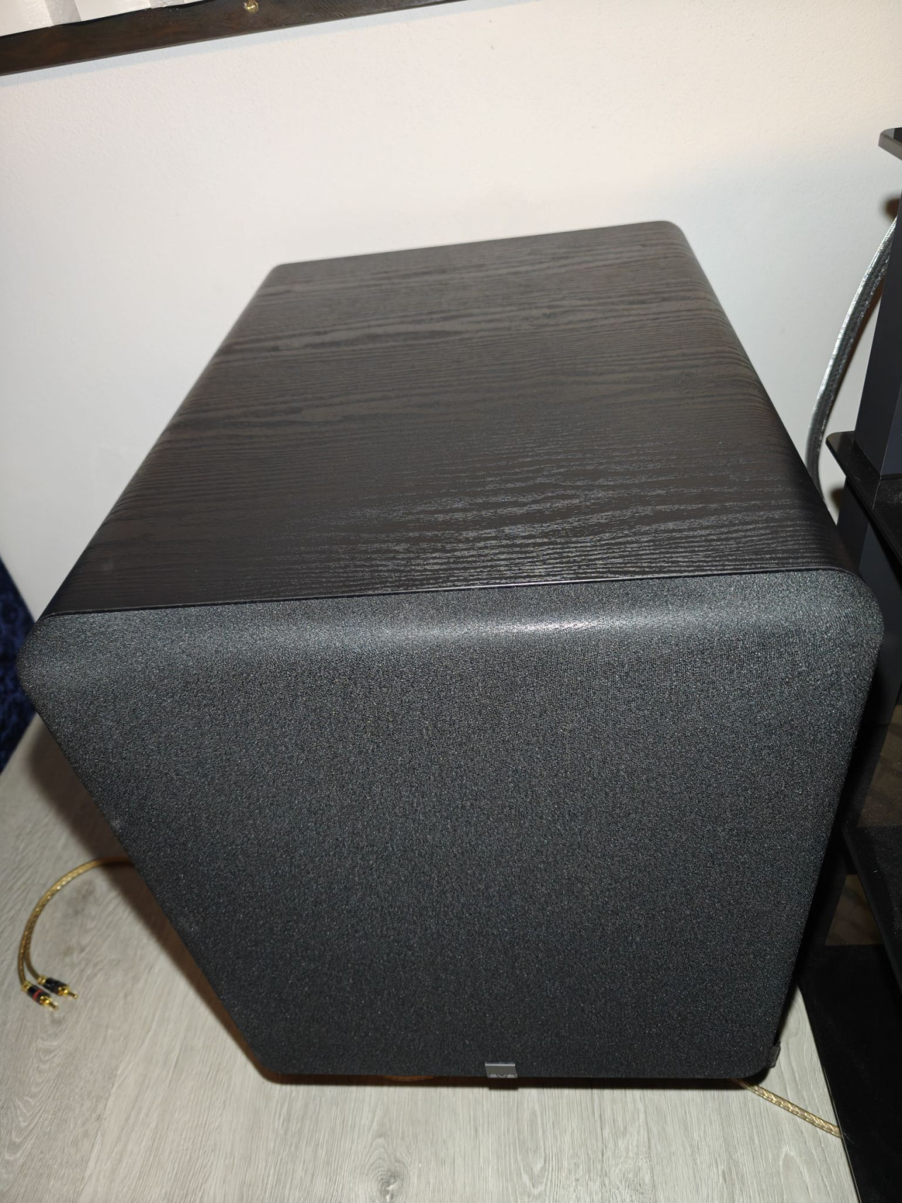 Subwoofer s basreflexem Ozvučnice se dvěma výstupy basreflexu na čelní straně, 12" hliníkový měnič, dvojitý magnet, zesilovač třídy D (500W), DSP procesor, nastavení a ovládání firemní aplikací a inteligentním rozhraním na zadním panelu.