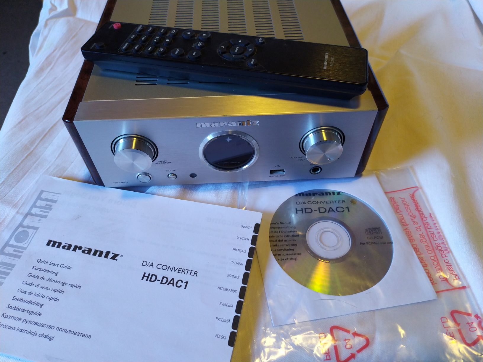 Hraje moc pěkně přes USB, optický vstup i jako prostý zesilovač ze separátního převodníku. Umí nativně i DSD. Plné příslušenství a originální balení je.