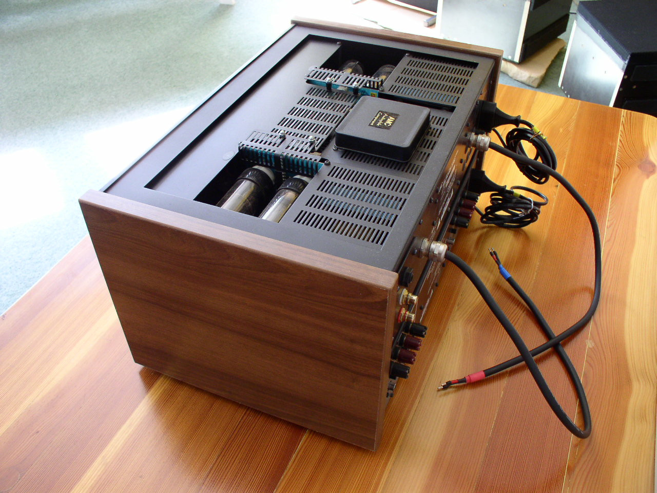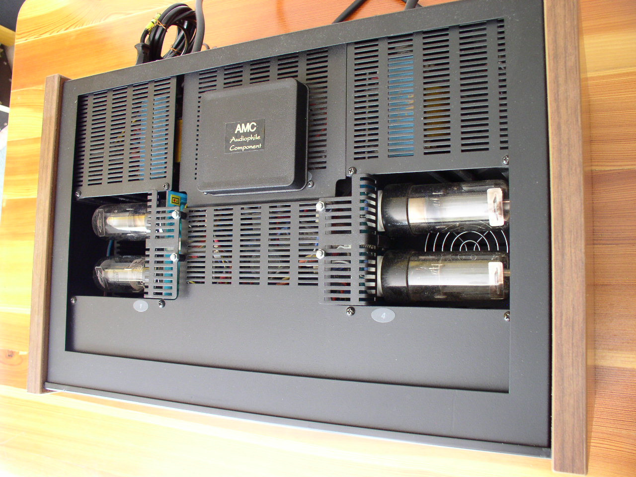 AMC CVT2030 : elektronkový 2 kanál upravený na lampy 6L6 (6P3S) jako zes. pro výšky. Uživatelsky jednoduché měření/kontrola klidového proudu lamp vestavěným měřidlem, nastavovací trimry klid.proudu přístupné zvenku–není nutno odkrytovat zesilovač, zdarma 2 náhradní sady NOS ruských lamp