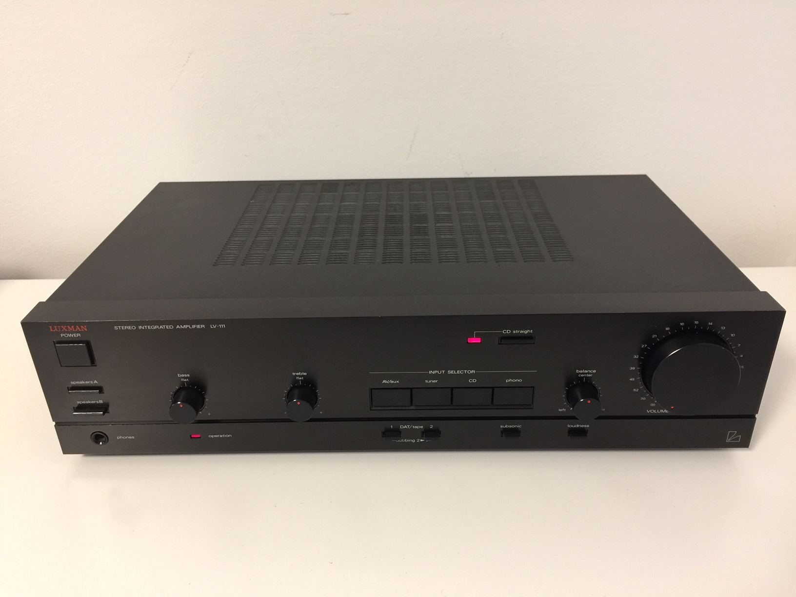 Vintage zesilovač (1991) od prémiové japonské značky. Hliníkový čelní panel bez škrábanců, jen na horní hraně drobné oděrky. Vyčištěný, kontakty a potenciometry ošetřené, nic nechrastí. Technické parametry na hifiengine.com, stejně jako uživatelské recenze příbuzného modelu LV-110 tamtéž (ty hvězdičky si zaslouží - Luxman nemívá špatné recenze :-). LV-111 má oproti LV-110 vyšší výkon (2x45W/8Ohm), technické provedení je téměř shodné. Zvuk, který neunaví ani při dlouhém poslechu, výborný phono vstup (MM) a přímý CD straight pro vyřazení korekcí. Testováno s regálovkami Canton SP205, sloupy Tannoy 638 a Magnat 144 414 - se všemi si bez problémů poradí. Rád předvedu (Praha 6).