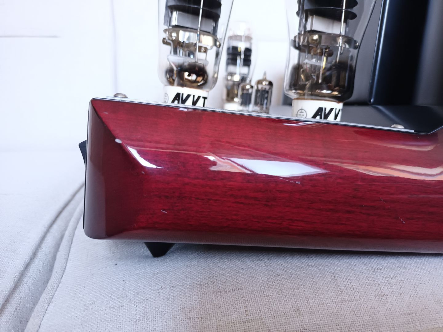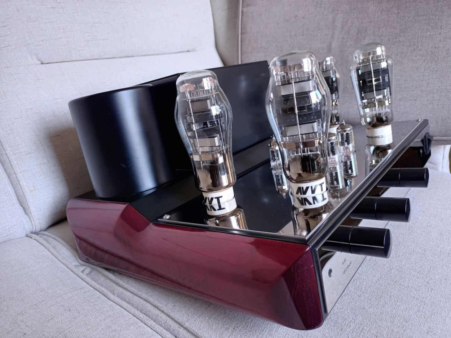 -výstupné / výkonové*: 2 páry 300B typu AVVT (Aleša Vaic Vacuum Technology) / Vaic Valve AV 302B SL (ukončená výroba, cena sa pohybovala okolo 500€ za kus!) - moderná "vysokovýkonná" verzia (21 Watt v maximálnych podmienkach na trubicu!) štandardnej 300B s extra chladiacimi doštičkami a väčšími vláknami, znejúca oveľa otvorenejšie v horným pásme a s oveľa lepšími basmi, super dlhá životnosť (10 000 - 40 0000 hodín), jedinečný superlineárny patent (patentované páskové vlákna AVVT so 16 rovnými povrchmi pre väčšiu linearitu), vysoko kvalitná ručná výroba, žiarovka je väčšia a z nerozbitného tvrdého skla, antimikrofóničné zavesenie v hornej časti elektrónky, keramická zásuvka UX4 s pozlátenými kolíkmi, ultra vysoké vákuum, termionické, "ako nový" zvuk takmer po celú životnosti !