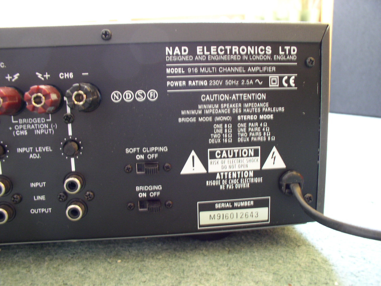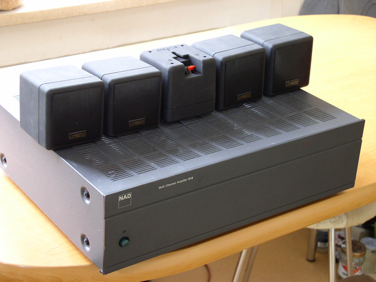 až 30A špičkového proudu/kanál, bipolární robustní konc.tranzist.Motorola, bufferovaný výstup z každého vstupu na další zesilovač (multi-room), regulace vstupní citlivosti všech kanálů i v můstkovém režimu, vypínatelný Soft-Clipping; robustní šroubov.repro terminály-banánek 4mm/vidlička/holý vodič; schéma zapojení-servisní manuál, včetně 5-ti mikro reproboxů Creative Cambridge SoundWorks