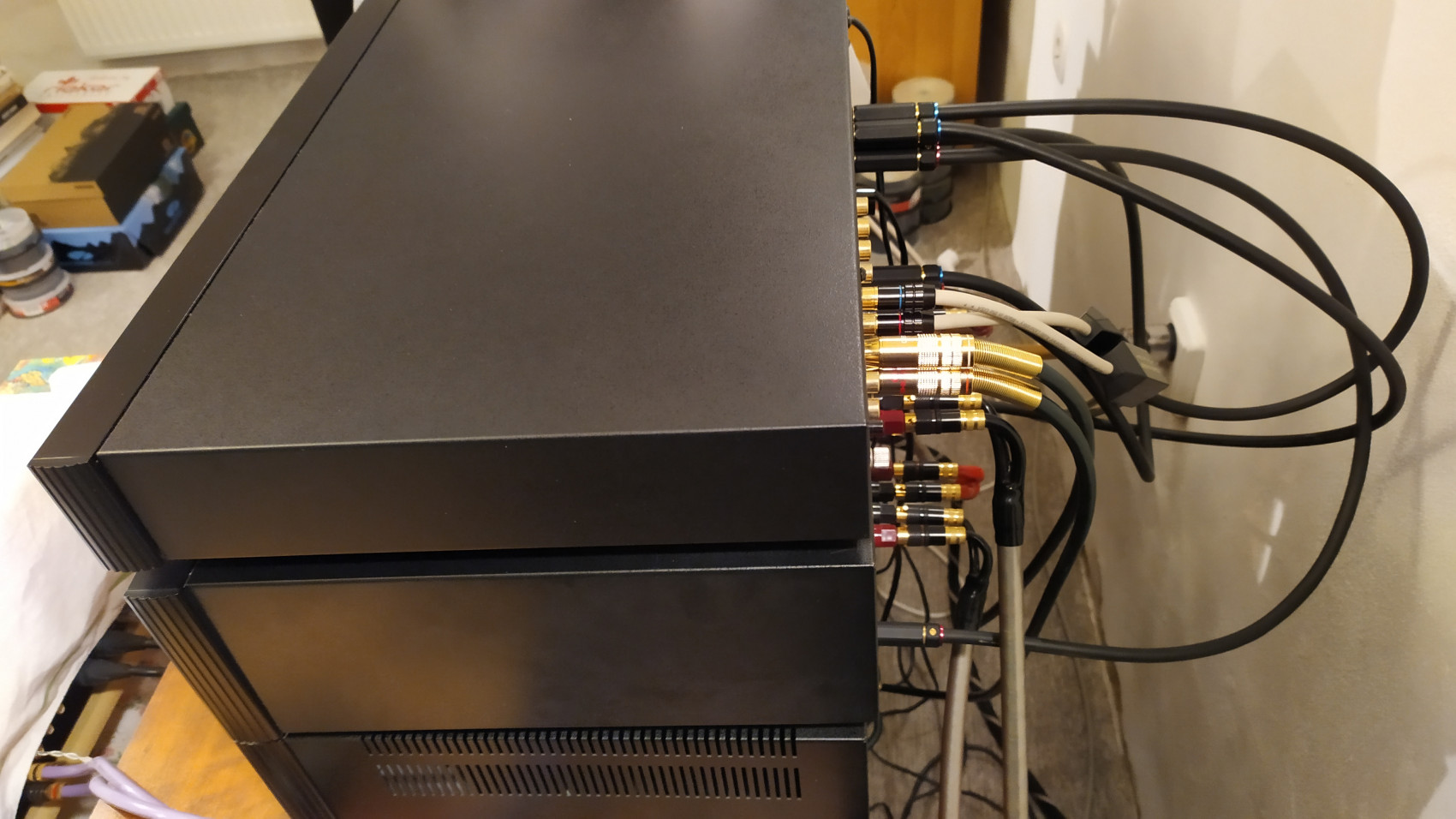 Prodám 2x koncový zesilovač ROTEL plus 1x předzesilovač ROTEL. ROTEL-RB-980BX:2x120W/8ohmu. ROTEL-RB-981BX:2x130W/8ohmu.Každý má 4x výstup a 2x vstup. Váha každého je 10Kg. Předzesilovač- ROTEL: RC980BX: 2xTape,1xAux,1xTuner,1xCD,1xPhono:MM a MC přenosky. 4x výstop. Vhodné pro zapojení jako Bi-Ampling nabo jak Monoblok. První majitel , doklady o koupi a originální krabice . Puvodní cena:56.000Kč. Za tuto cenu bezkonkurenční zvuk. K tomu dám zdarma 4xpropojovací kabely mezi předzesilovačem a koncovými zesilovači japonské : OYAIDE ACROSS-750 v délce 75 cm.