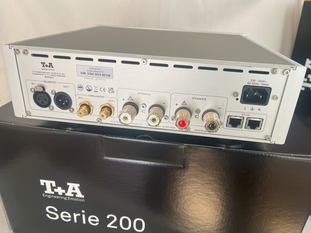 Predam dva koncove audiofilske zosilnovace/monobloky T+A M200 (uvedena cena je za kus) v zaruke. Su v top stave, bez akehokolvek znaku pouzivania. Zakupene boli v lete 2023 od slovenskeho partnera T+A enigma-audio. Predavaju sa v originalnom baleni so vsetkym, co balenie obsahovalo (kable, zarucny list, kontrola kvality, manual). Monobloky maju rovnaku architekturu ako koncovy stereo zosilnovac T+A A200. (O par mesiacov budu k nim na predaj aj dalsie komponenty T+A DAC200 a MP200.)