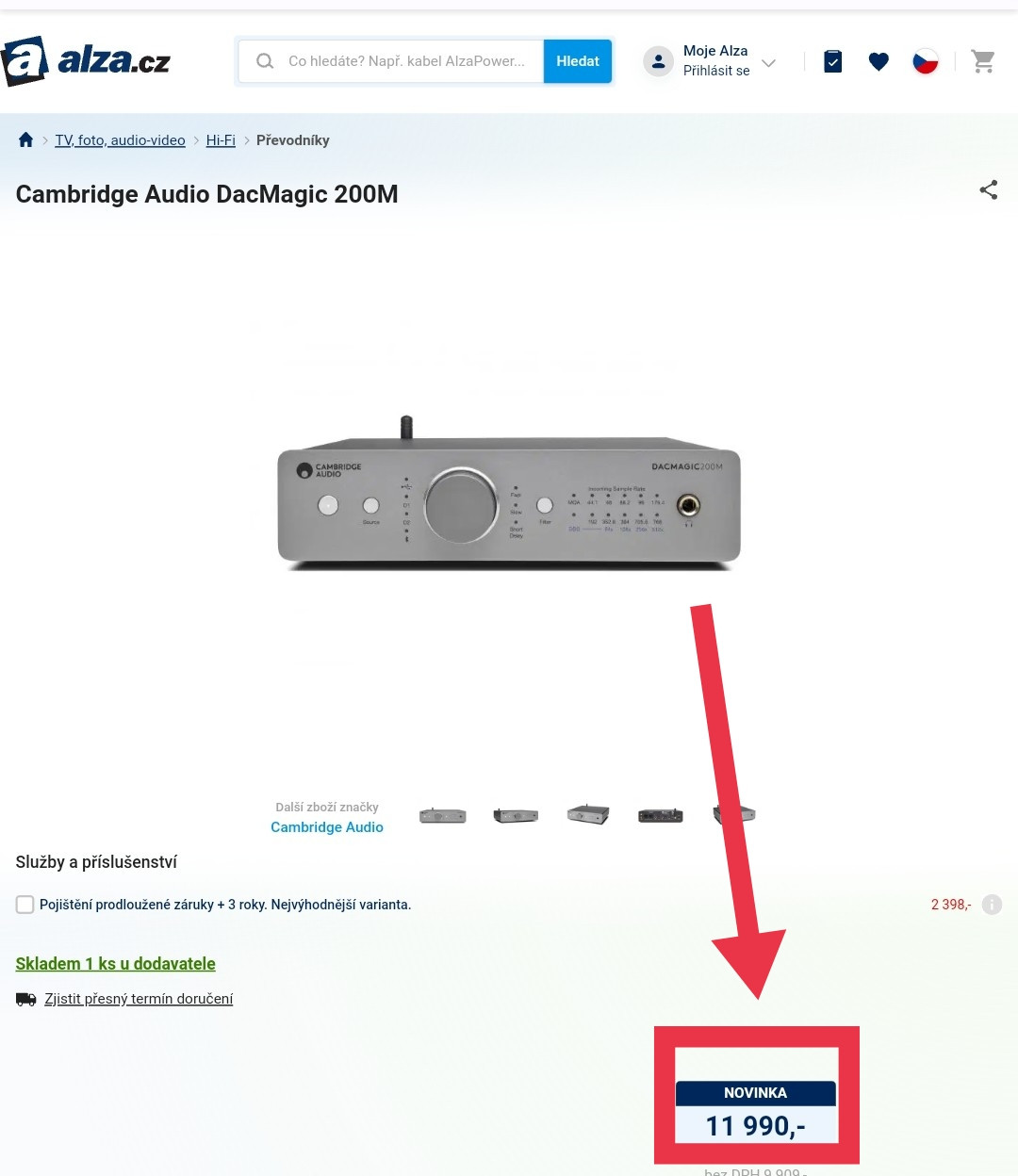 Začalo to o kabelech a pokračuje o DAC. Proto si dovolím jenom takovou záležitost z Alzy. Úsměv vzbuzuje poznámka "Novinka" a smutek cena.