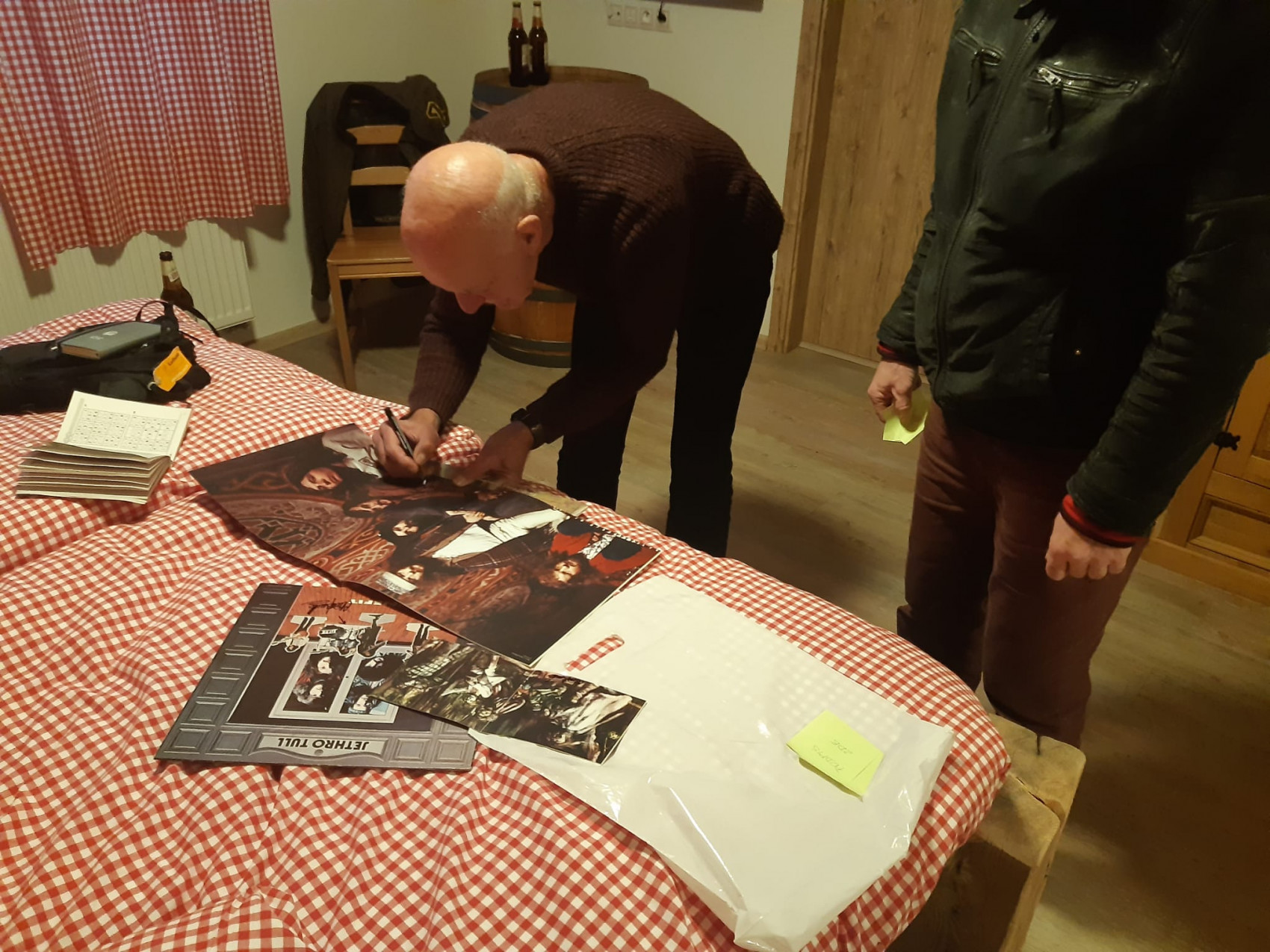 Clive Bunker podepisuje LP "Aqualung' pro mého kamaráda (a bývalého spoluhráče z mládí)