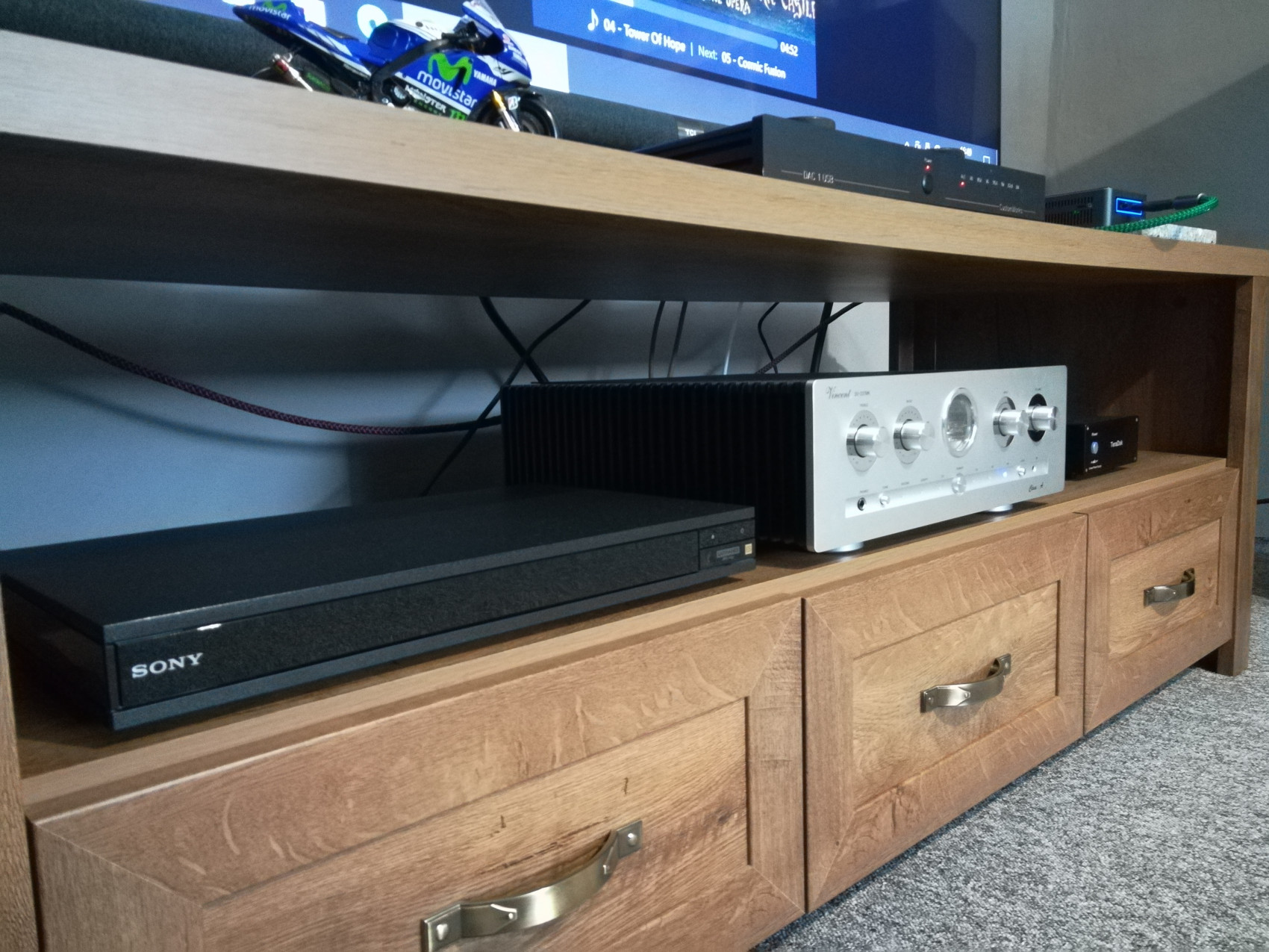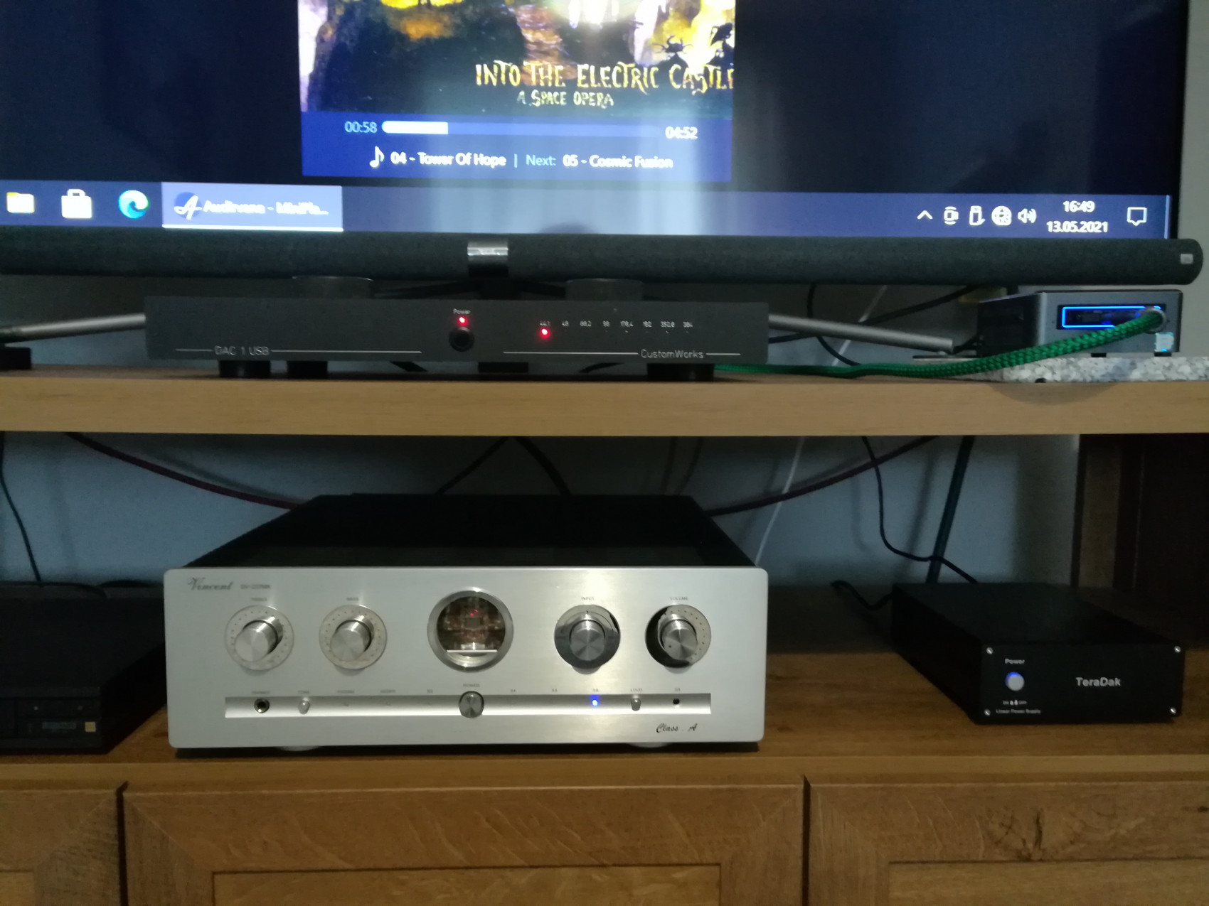 Napájecí kabel k Teradak mám zatím dodaný výrobcem, ten zlelený kabel je USB Sroll.nes mi dorazila nová hračka NOS elka Tesla ecc 803-s, nasadil jsem a poslouchám. Také jsem zakoupil bazarový Sony UBP-X 1000 ES za pěknou cenu a oproti NUCu s UHD grafikou je to lépe podaný obraz jak DVD, BD, ale i videí z NASu. DVD je kupodivu reprodukováno s vynikající kvalitou obrazu, Bd disky jsou ještě lépe zobrazené, UHD disky zatím nemám ale jistě si pořídím. Přehrávání z Nas je bez problémů, plynulé a s lepší kvalitou obrazu než z NUCu. Mám vše v UHD a FHD. Propojeno mám z Sony HDMI do TV a z TV optikou do zesíku, toto propojení jo O.K. ale pokud propojím Sony se zesíkem jinou cestou napřímo nastane silnější brum. Nevím čím to je, pokud by někdo věděl budu rád za radu, ale asi je něco K.O.