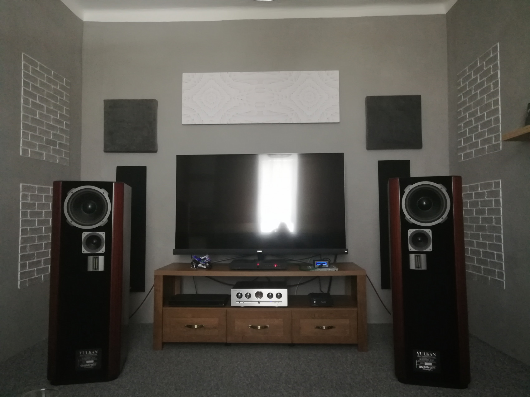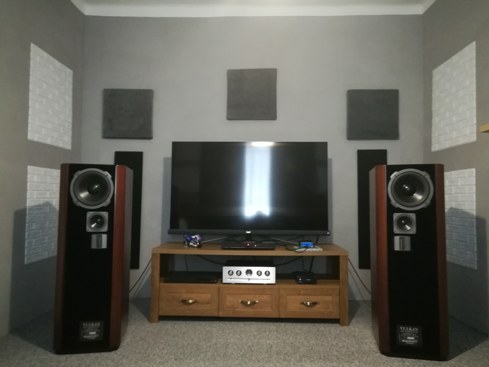 Provedl jsem nutné úpravy akustiky jelikož jsem se potýkal s ozvěnou v místě umístění sestavy. Změny fungují, ozvěna eliminována a vše zní lépe.