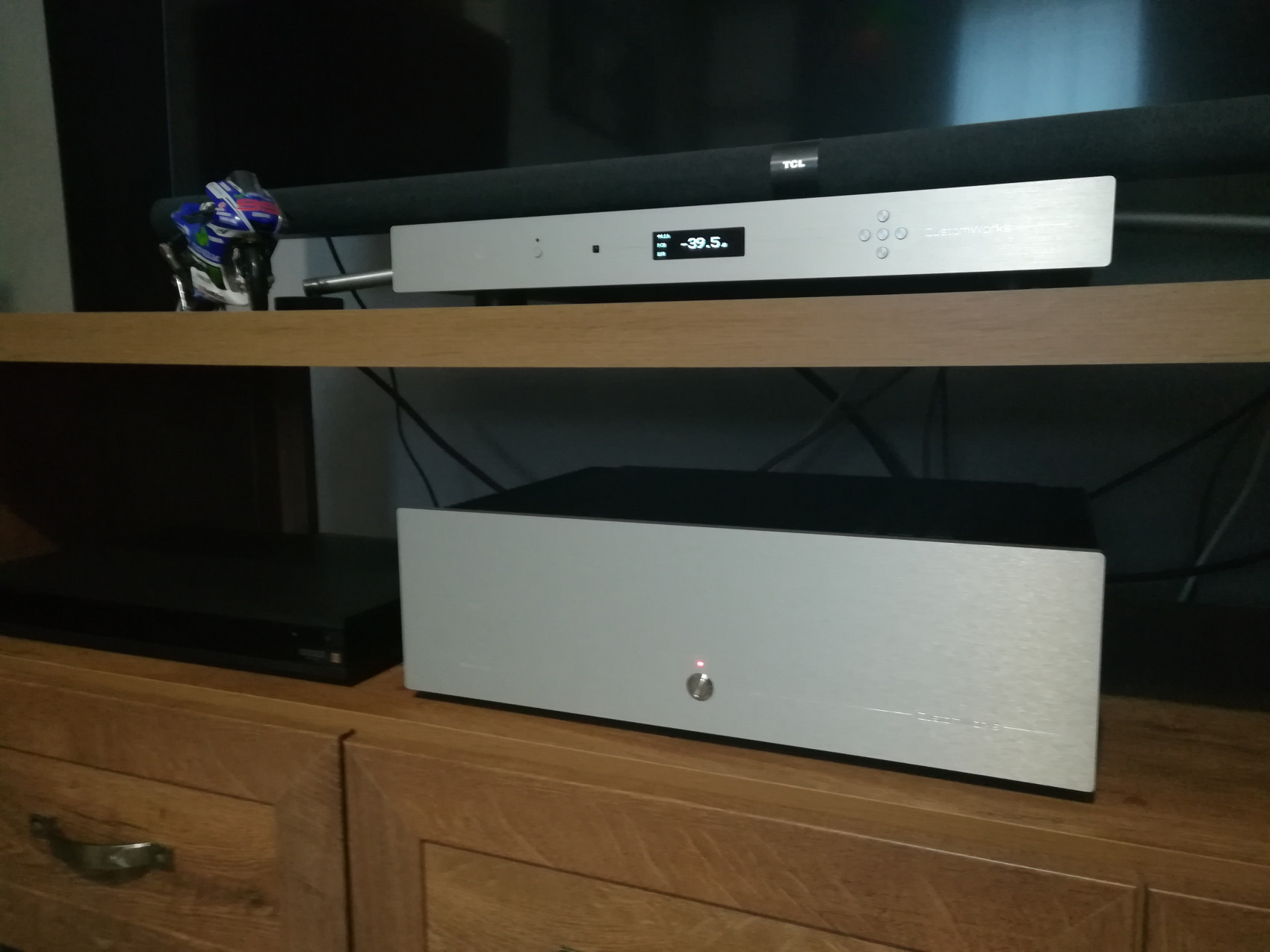 Dnes jsem si přivezl od p. Stranky Hypu 17 MK2, po předchozím poslech ve studiu v Litoměřicích. Měl jsem i možnost poslechu referenční reprosoustavy p. Stranky, bedniska to jsou nádherné, a zvuk je fantastický. Pan Stranka je velice vstřícný člověk, a hlavně velice schopný. Hypou jsem nahradil Vincenta 237 MK ( 50K ), Hypu provozuji napřímo z Dac 1 NG Oled ( bez preampu ). No a jak to vše hraje ? Bohužel pro Vincenta, tato kombinace je o hodně jinde. Ještě mám v plánu vyzkoušet preamp od customworks, a pak uvidím jestli ho přikoupím. Hypa 17 MK2 má 130 W do 8 Ohm, a moje Vulkány mají citl. 83 dB, měl jsem obavu jestli Hypa obstojí, no už jsem si jistý že ano, a lépe než Vincent. Pokud někdo zvažuje komponenty od CustomWorks a stále váhá, věřte že tyto komponenty přehrají daleko dražší značky. Sám jsem se o tom přesvědčil.
