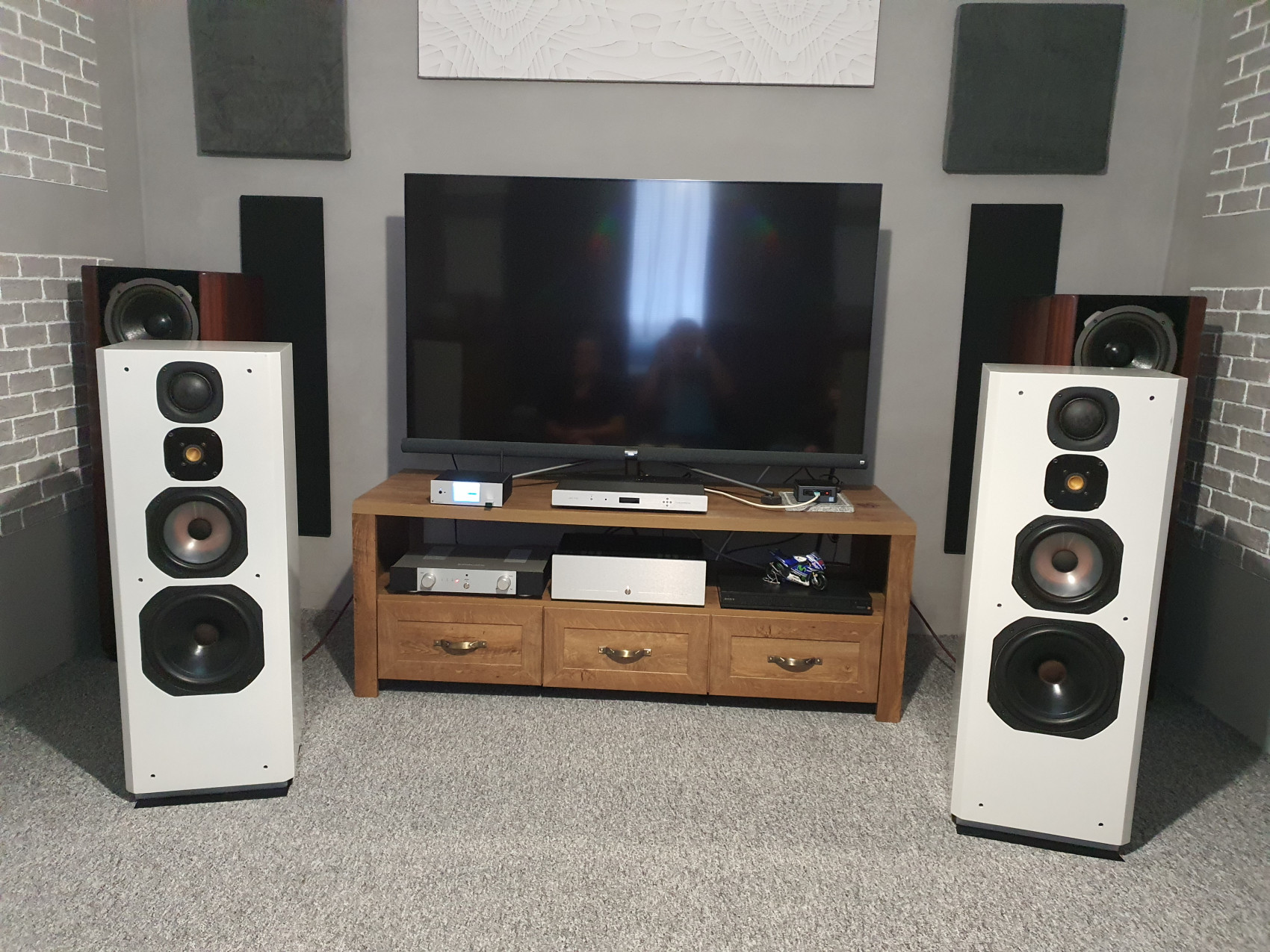 Dnes mě navštívil můj kamarád Michal, a dovezl Focal Onyx které jsme otestovali na mé sestavě. Zvukově jsou tyto bedny na vysoké úrovni, mají výborné střední pásmo, neúnavné výšky, a pevný a tvrdý, až bych řekl technický bas. Celkově jsou vyrovnané. Trochu mi oproti mým Vulkánům chyběla prostorovost, takové to 3D co Vulkány umí, ale je možné že kdyby jsme si pohráli s umístěním dosáhli by jsme lepšího prostoru v reprodukci. Bedny jsou to moc pěkné, a z dnešní produkce se jim vyrovnají jen ty s vyšší cenovkou. Pro mě to byla dobrá zkušenost, a opětovné potvrzení toho, že raději si koupím bedny sice třeba 30 let staré za 25 tisíc, než nové za 80 tisíc. ale každý to má nastaveno jinak, a tohle je jen moje zkušenost, a názor. Ne všechny staré bedny hrají dobře, ale jsou takové, stačí je jen najít.