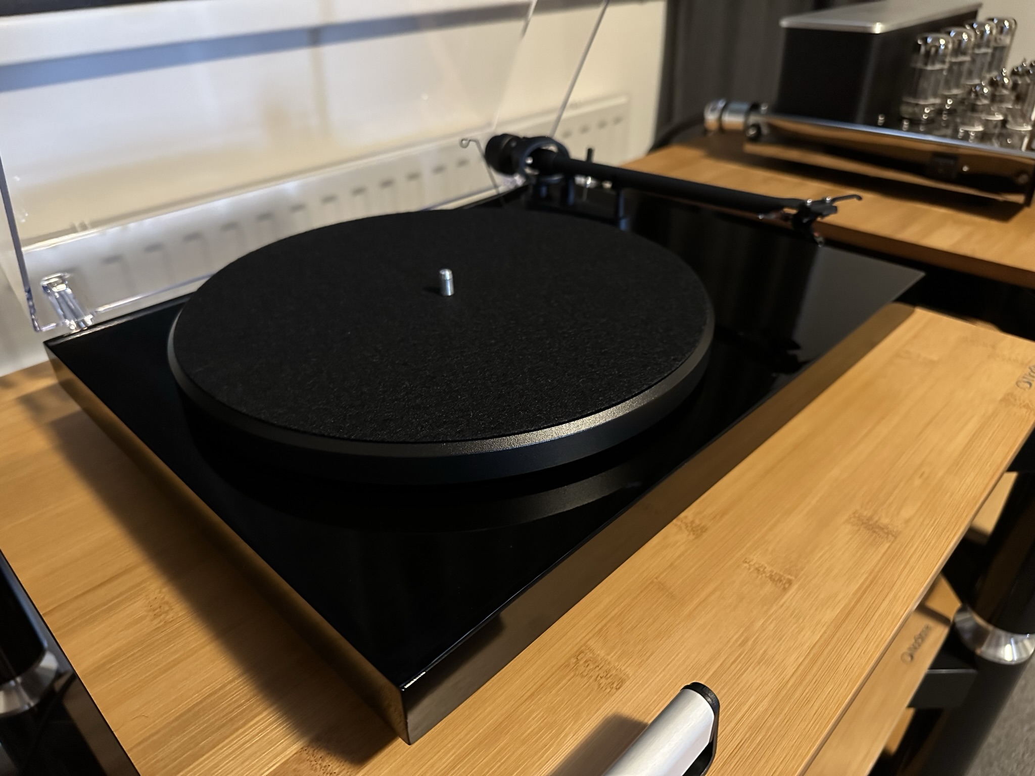 Pak tu byl Project Debut III s Ortofon přenoskou. Je z něj vidět i cítit, že je to levný začátečnický gramofon. Moc nastavení na něm nejde udělat a zvuk je opravdu slabý, detail nahrávek a náznak prostoru tam je, ale je to bída. Nicméně pro začátečníka nebo nenáročného občasného posluchače gramofonu asi dobrý.