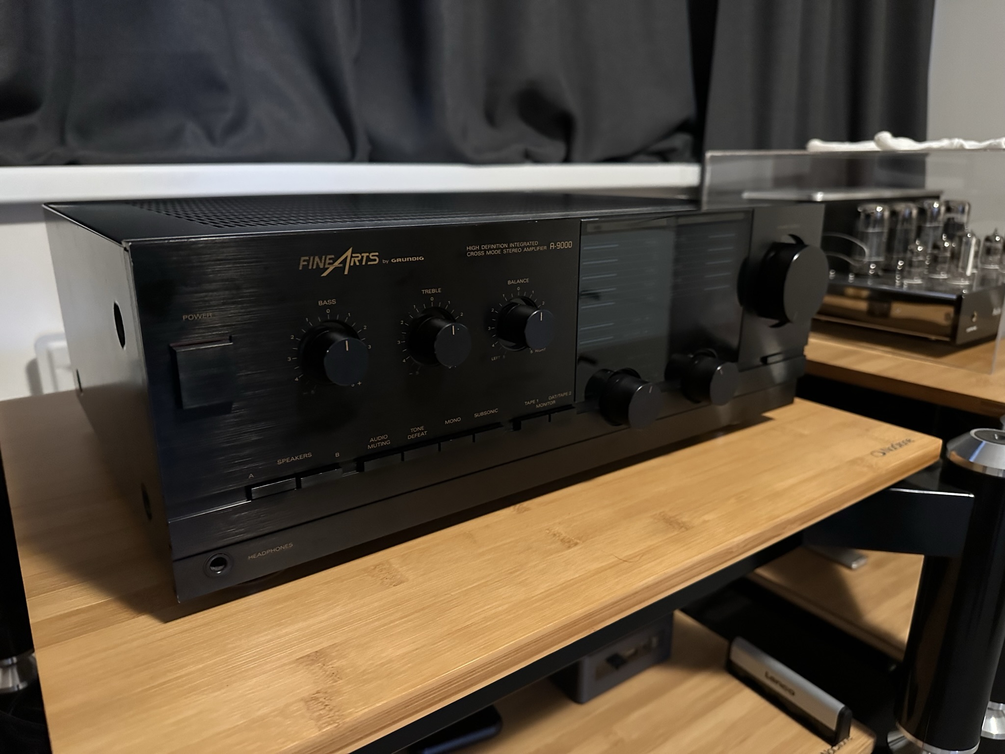 Další povedený zesilovač byl Grundig FineArts 9000. Údajně je vnitřek Marantz, což by zvukově i odpovídalo. Mám zvuk starých Marantzů rád a také se mi projev tohoto stroje líbil a vzhledem k ceně těchto strojů musím říct, že to není vůbec špatná volba, ale hodně bude záležet na zbytku sestavy.