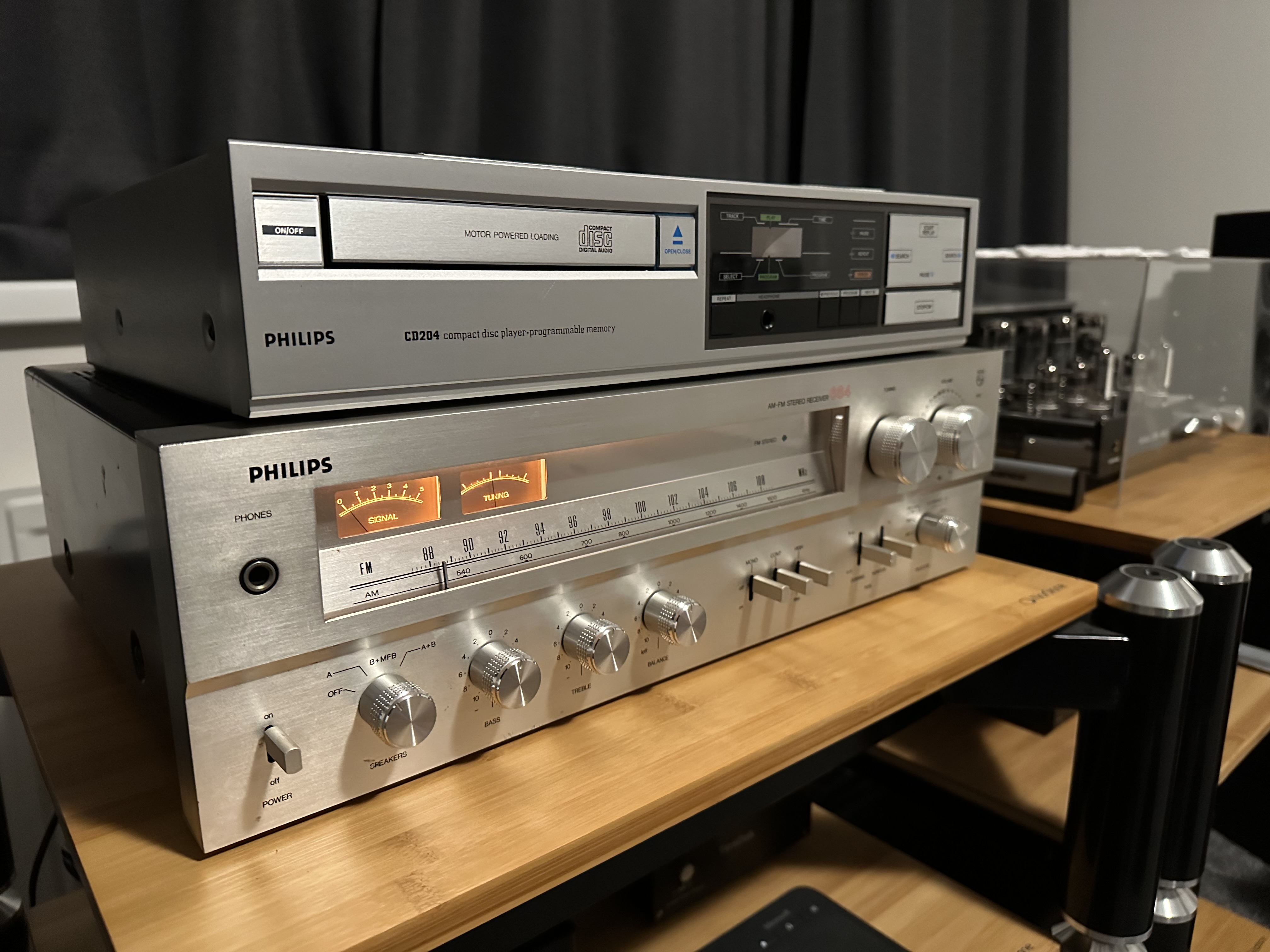 Dnes jsem tu měl na poslech a spíš na pokoukání receiver s CD od Philips, model AH684 a CD204. CD mne moc nepřekvapilo, mne všechna CD zní tak trochu plechově, ale Receiver 684 hrál moc příjemně. Slušný prostor, dobrá dynamika i rozlišení nástrojů, už jsem slyšel i lépe hrající přístroje, ale za dané peníze to nebylo vůbec špatné