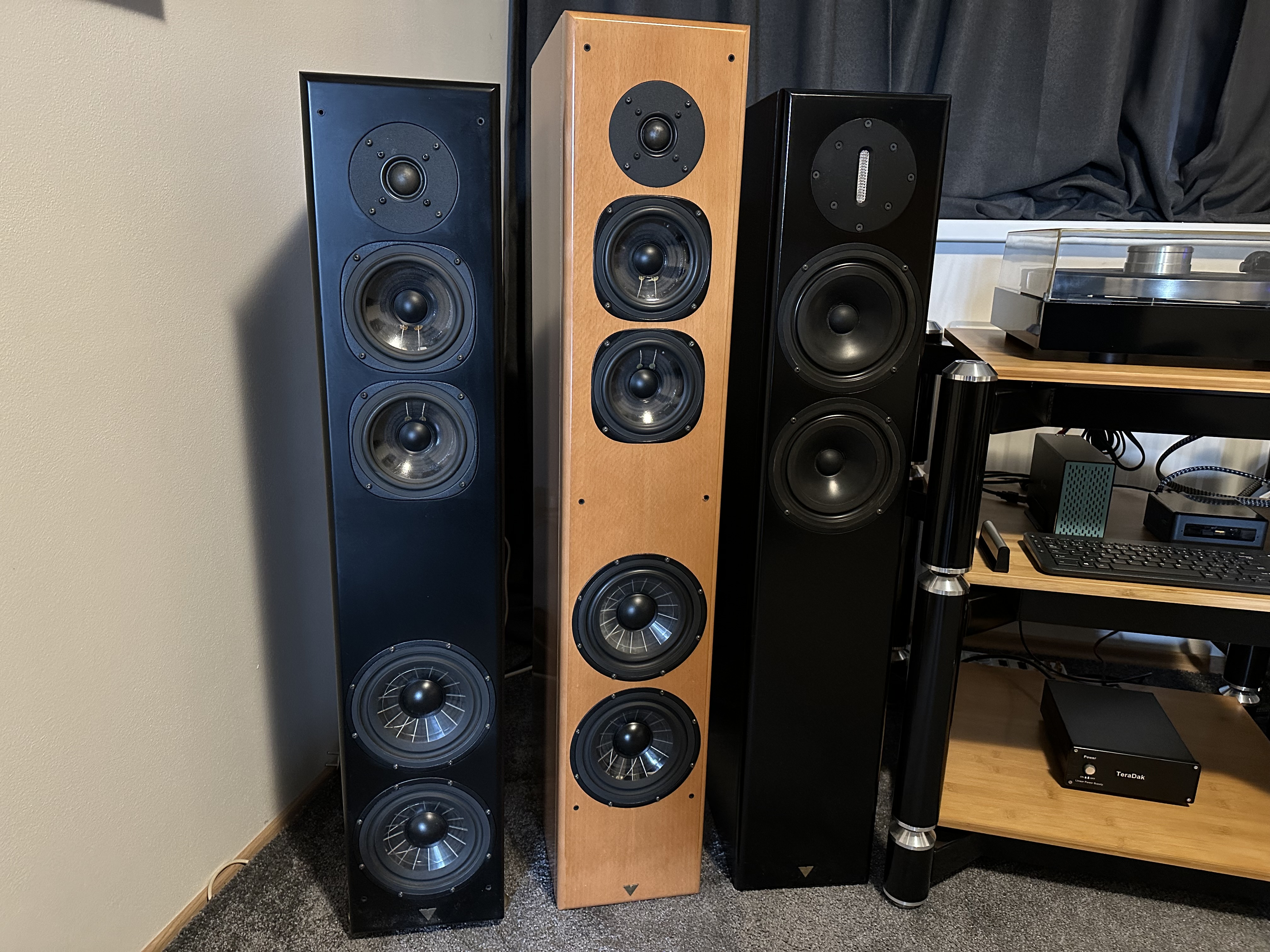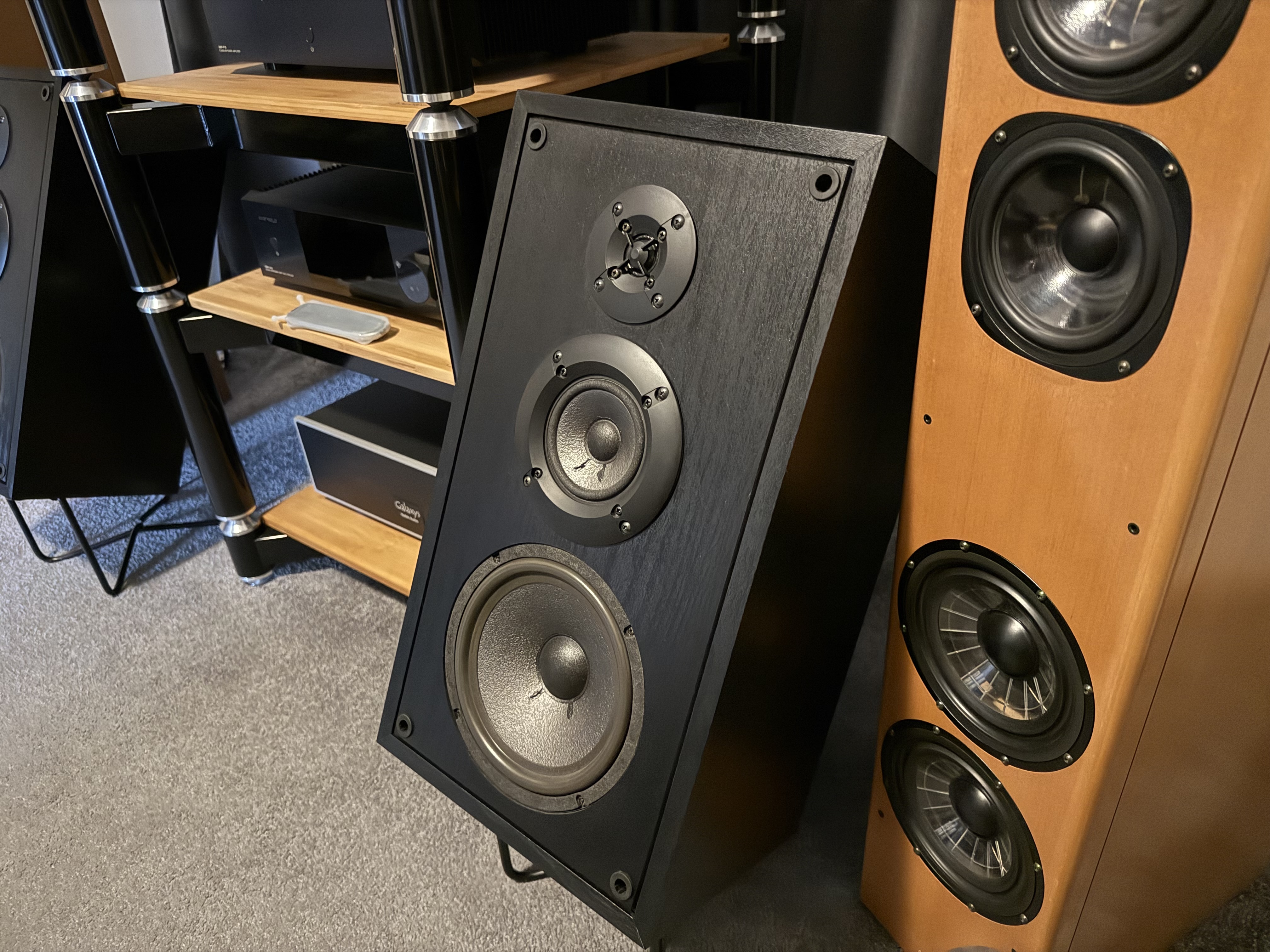 Šlo o nejvyšší model nižší řady. Vzhledově tuctové černé bedny v imitaci dřeva, ale osazení z vyšší řady a musím říct, že se mi zvuk opravdu líbil. Určitě to nejsou bedny pro každého.