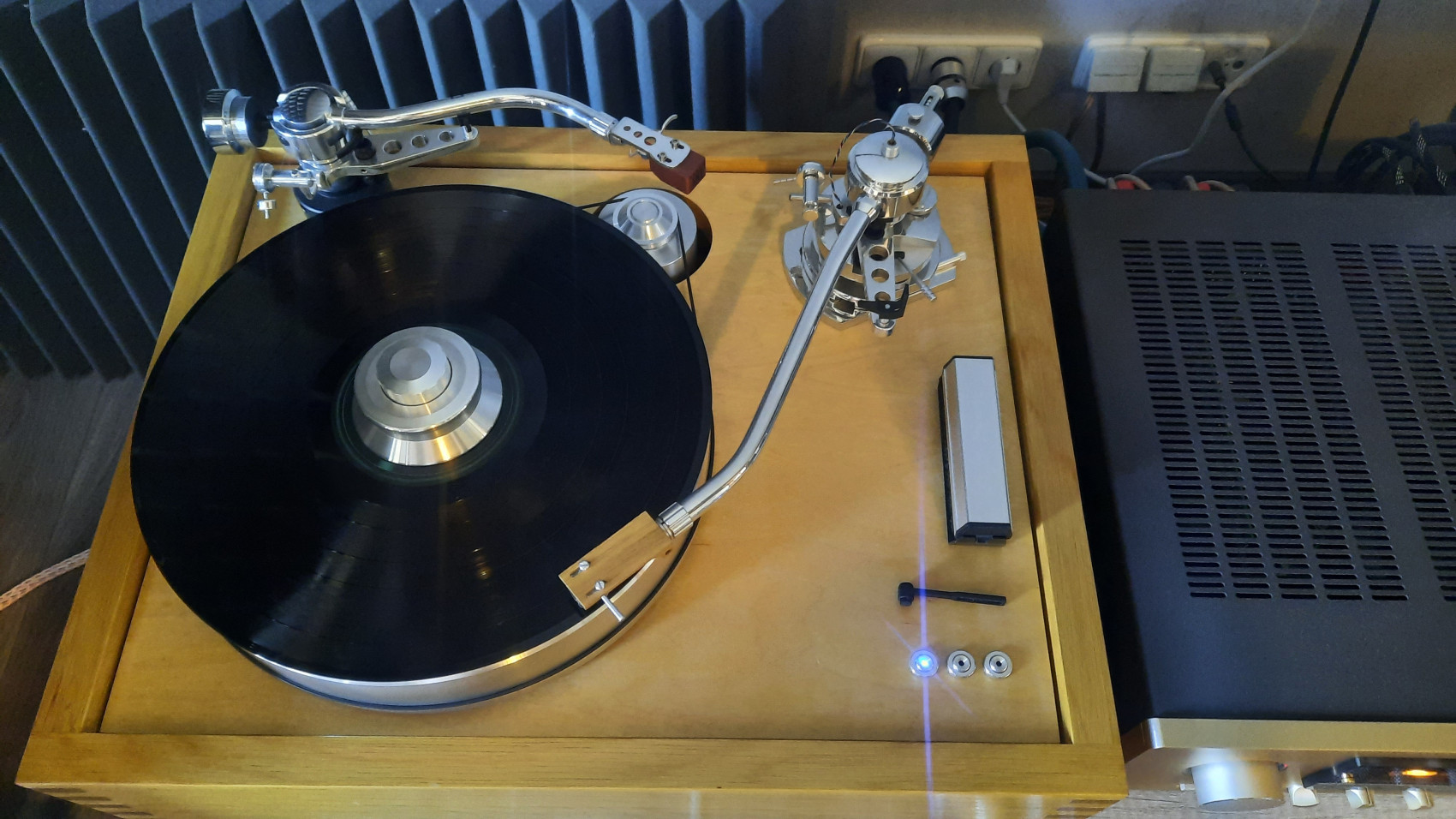 Takže, sehnal jsem si 2 synchromotory na které jsem nechal udělat 1cm silné domky kvůli stínění. K tomu mám řídící jednotku která si sama generuje vlastní sinusovku pro regulaci otáček. K motorům jsem jako první zvolil dvoudílnou mezikladku alá P-J Signature 12 s invertním ložiskem. I když mne hifi kamarádi od tohoto řešení odrazovali. Protože kladka zanese další nepřesnosti do otáček. Hned po prvním testování jsem zjistil že to není vůbec dobré řešení. Kladka se celá chvěje a v některých případech začne klepat. Takže jsem si nechal vyrobit další, tentokrát z jednoho kusu a opět na ivertním ložisku s kuličkou. tuto kladku mi navíc udělal soustružník o 1cm užší. Vůbec nechápu jak se mu to povedlo když měl i nákres. Tato kladka už se chovala lépe. Ale přesto se u ní objevovalo klepání. Dlouho jsem na to nemohl přijít jak to odstranit. A na další kladku s jiným typem ložiska už se mi fakt čekat nechtělo. Takže jsem dělal několik hodin pokusy jak toto vyřešit. Protože pro každou zkoušku jiného maziva jsem musel rozházet celí gramofon včetně ramen. Nakonec se ukázalo že stačí velmi hustá vazelina která je do ložisek. Takto je kladka zcela tichá a mohu to doporučit vyzkoušet i všem co vlastní Signature 12. Celá sestava pohonu dostala vlastní základnu na stavitelných hrotech. Nakonec jsem umístil ovládání do normální polohy alá Signature 10. Je to již třetí pohon co mám na tomto gramofonu. Tentokrát musím říct že je rozdíl největší. Zatím mám otáčky nastavené jen podle mobilní aplikace (RPM Speed and Wow). Než se to trochu zajede. Pak si to nastavím přesněji s měřící deskou.