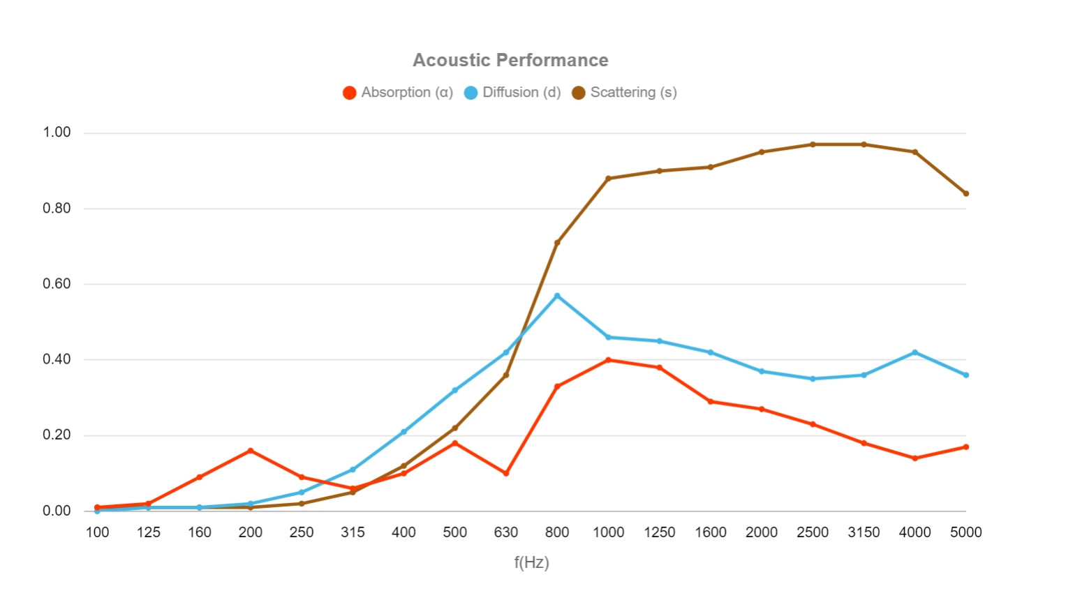 Ja bych odhadoval, ze nejaka aspon trochu difuze tady bude zacinat od nejakych 1000Hz. Pro nizsi frekvenci by to muselo mit hlubsi profil a vice nepravidelnosti. Pokud absorpcni penu necim prekryjes, jako treba tady tema listama, tak logicky omezis plochu absorpce. Vzhledem k tloustce tech list to bude do urcite miry odrazet vyssi frekvence, zato stredy a vysky projdou. Timpadem bude omezena absorpce na vyssich frekvencich.