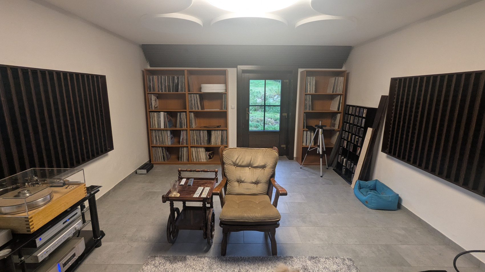 K mojí poslechovce. Včera sem to konečně dodělal. Dalo to mnohem víc práce než jsem si myslel. Takže aktuální stav: Na stropě mám melaminové kruhy 4x100cm + 4x75cm a ještě mám v zásobě 4x50cm které možná přidám později. Více info o nich třeba zde:
