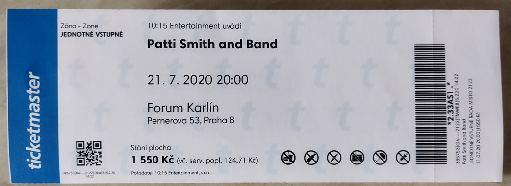 Prodám lístek na koncert Patti Smith ve Forum Karlín 19.7.2022.