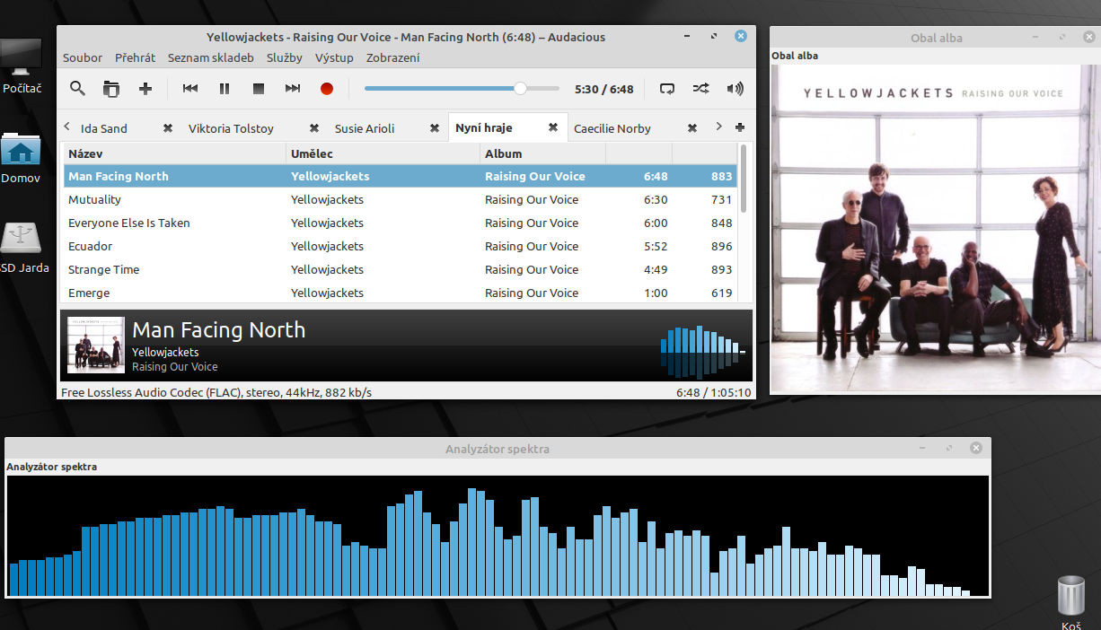 Ahoj! Slíbil jsem, že něco napíšu o mém zkoušení přehrávače Daphile. Pracoval jsem s verzí Daphile LIVE a než jsem pochopil, že stroj, na kterém bootuji systém Daphile z flashky, je ten, ze kterého přehrávám I hudební data, mě chvilku trvalo. Mám doma tři notebooky se čtyřmi OS a ještě RPi4, takže jsem se trochu zamotal, ale když jsem konečně zjistil “pravdu”, tak už to šlo. Pořád jsem totiž neviděl v aplikaci Daphile disky s hudbou, DAC, ale úplně něco jiného. Nastavení aplikace není složité, vlastně si našla veškerý HW sama a jen je třeba ji nasměrovat na DAC a správný HDD. Chvilku trvá, než načte všechny tituly z HDD, ale potom už jede celkem rychle. Na ovládání jsem si musel trochu zvykat, nečte soubory *.cue a *.m3u. Zase ale načte z adresáře skladby CD ve správném pořadí, takže to vlastně nevadí. Ještě musím říci, že jsem chtěl porovnávat dva SW na přehrávání hudby v Linuxu, a to Audacious a Daphile, a aby to bylo jakž-takž spravedlivé, našuměl jsem si výstup z Audacious a srovnal z výstupem z notebooku, čili z Daphile. Poslouchal jsem mou oblíbenou kapelu Yellowjackets, CD Raising our voice ve flacu 44,1/16. Stejnou nahrávku jsem ještě v závěru porovnal se Spotify, kde mám nastavenou kvalitu “velmi vysoká”. Tato nahrávka Yellowjackets- a nejen tato -je natočená a smíchaná velmi dobře, podle mého soudu. Také jsem využil možnosti poslechnou si nahrávku ve formátu DSD64 zpěvačky Lyn Stanley. Mám ji také ve flacu, ale porovnat už nebyl čas, i tak to byl let ve vánočním blázinci. Trochu se ukázala být nevýhodou doba, po kterou trvalo ukončení Daphile a najetí Linuxu s Audacious. Ale i tak mohu říci, že určité změny jsem zaznamenal a sice ve prospěch Daphile. Jsou to lépe vykreslené výšky, činely i hi-hat zní velmi dobře, skutečně každé zavření hi-hat jsem slyšel, I když jsou v hudbě celkem nevýrazné. Nepatrné změny jsou I v basu, který je trošinku suverennější. Další změny jsem si všiml v podání stereo báze, kde střed báze je nepatrně méně prezentnější, než u Audacious. Jsou to takové, nebojím se to říci, malichernosti, kterých si vůbec nevšimnete, pokud nebudete hledat opravdu blechy. Zajímavé bylo ovšem porovnání obou SW se Spotify, kde tatáž hudba zněla opravdu skvěle. Čili pro mě je rezumé takové: pokud budu mít chuť a sílu vymezit si pro Daphile kus místa na disku a nainstalovat plnou verzi, je to nepatrný posun vpřed pouze za práci. Zatím zůstává Audacious, nemám proti němu žádné výhrady a v mých očích je absolutně rovnocenný. To je asi vše. Jrd
