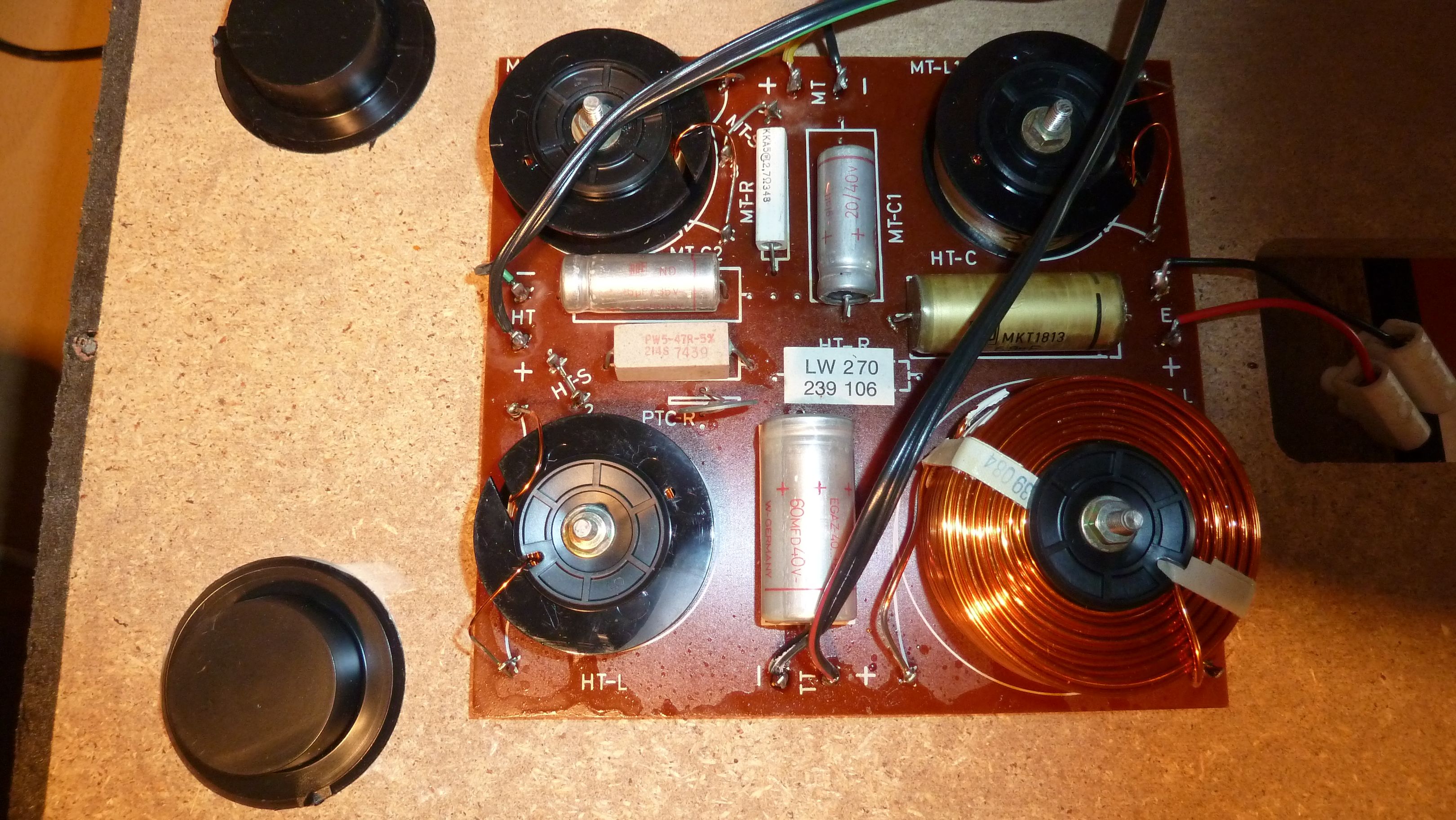 Rozhodně bych vyměnil elektrolytické kondenzátory. Aspoň za bipolární , ještě lepší za svitkové, lze vyskládat i větší kapacity. Ty zaberou více místa, ale do bedny se vejdou. Vytlumit bednu také doporučuji.