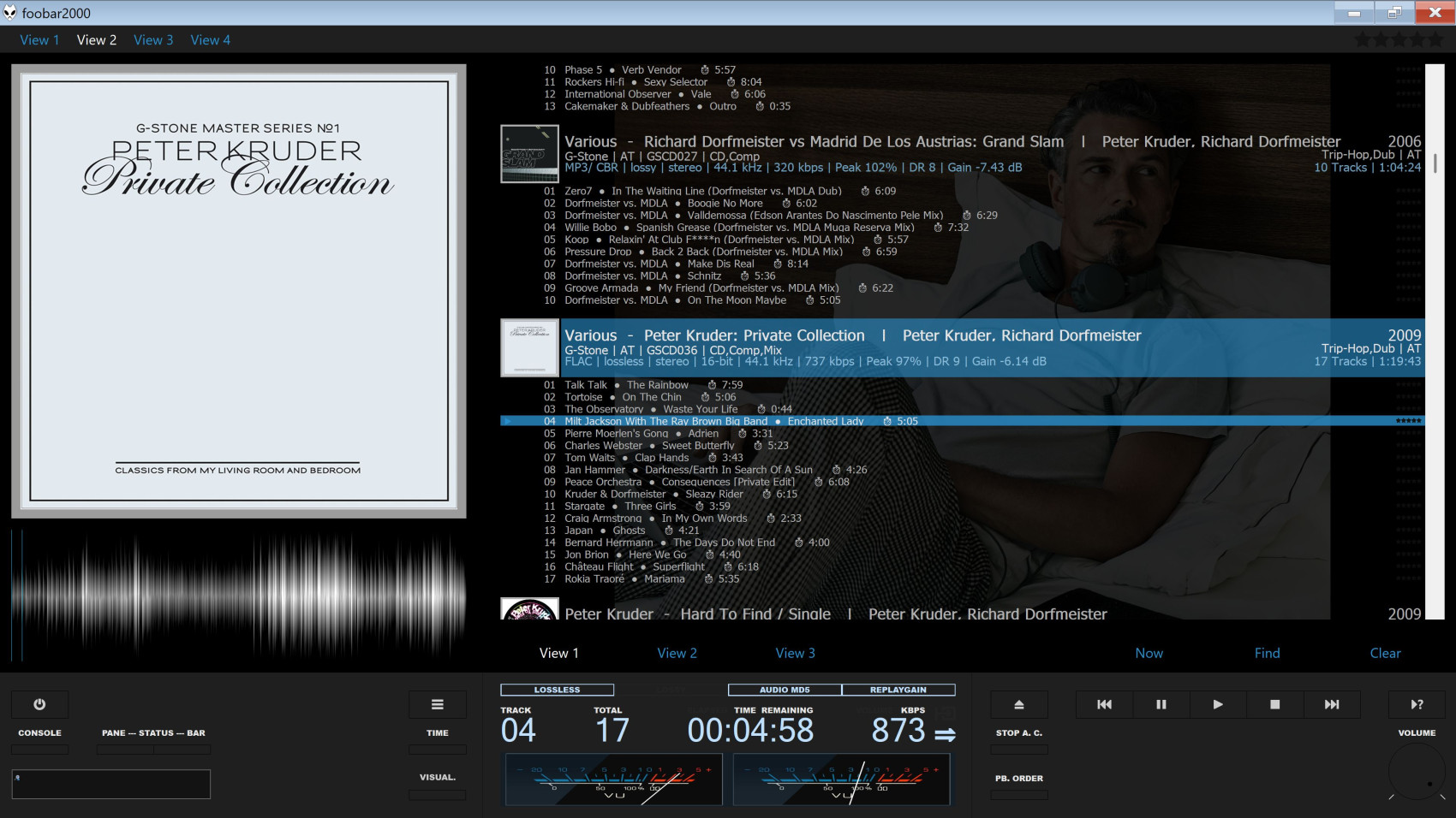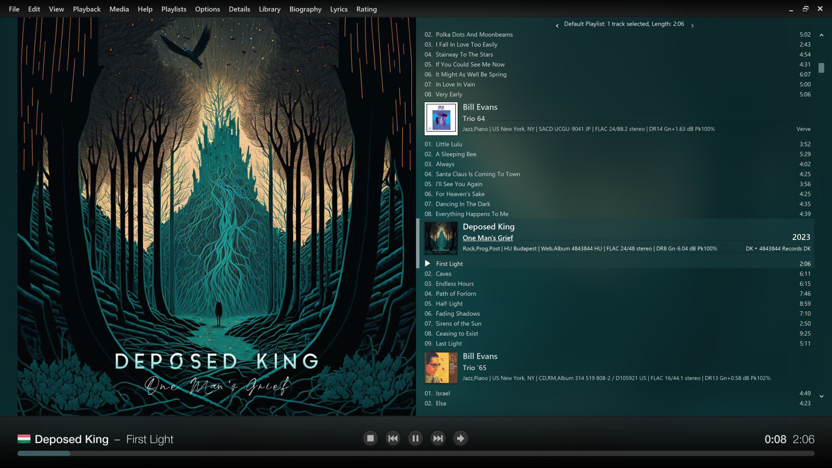 Jsou na to plugin komponenty Waveform seekbar nebo Waveform Minibar. Já pořád používám DarkOne, připadá mi to nejpřehlednější, nadefinoval jsem si tam i své pole pod názvem alba, takže tam mám technické informace a také informace o vydání, které se přehrává. Zatím jsem nepřišel na nic lepšího. Plus je schopné to utáhnout celou moji 13TB sbírku z NAS v jednom playlistu, jen start je trochu delší.