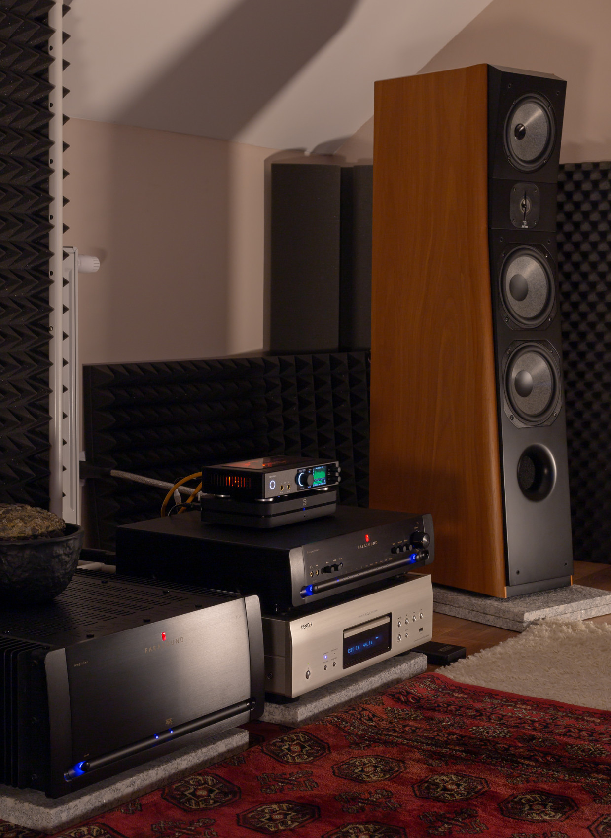 Dalsi konkretni priklad: RME ADI-2 Pro. To je DAC kombinovany s predzesilovacem. Poloha volume v polovine rozsahu (je digitalni takze uprostred rozsahu hodnost mezi min a max) znamenala takovou stredni az trochu vyssi hlasitost. S preampem Parasound Halo P5 pri Volume na 12. hodine, tedy na pulce, se klepala betonova podlaha a nebylo slyset vlastniho slova