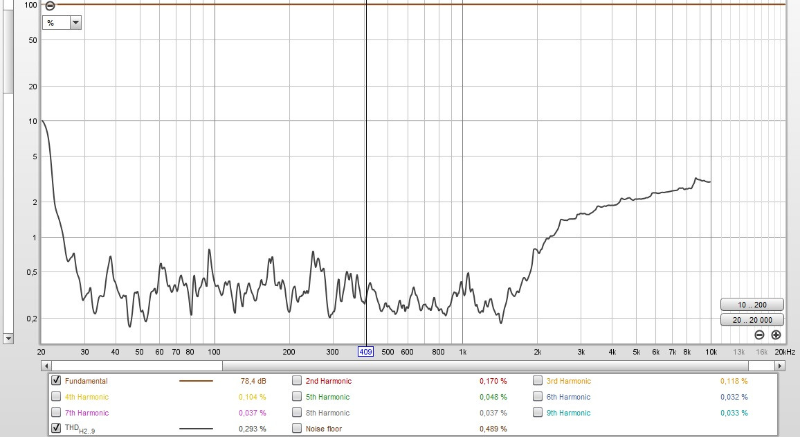 Díky té úpravě tlumení se dost zlepšilo i celkové zkreslení na basech. Měření obou beden na střed.
