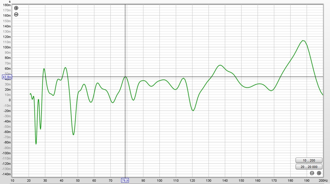 A teď to co bylo na těchto bednách nejhorší a to zpoždění. Vlastně ani nevím jestli za to může jen to tlumení nebo i lepší umístění nebo lepší dozvuk místnosti. Ale zlepšení je teď obrovské. A je to i slyšet. V grafu je jedna strana. Ty špičky na 137 a 187Hz jsou odrazy. Na závěr, musím říct že to byla vždy sestava číslo 2. Ale poté co jsem do ložnice dal přes celou stěnu regál na desky a ten zaplnil asi z 1/3. Tak se mi velmi snížil dozvuk a z beden leze tolik nových informací. Od té doby je ladím s umístěním a kabely. A fakt z nich nechápu. Je to neuvěřitelné jaký mají horny potenciál. Vůbec se nedivým že tomuto zvuku propadlo tolik hifistů. Hlavně tedy těch co poslouchají ty velmi staré nahrávky.